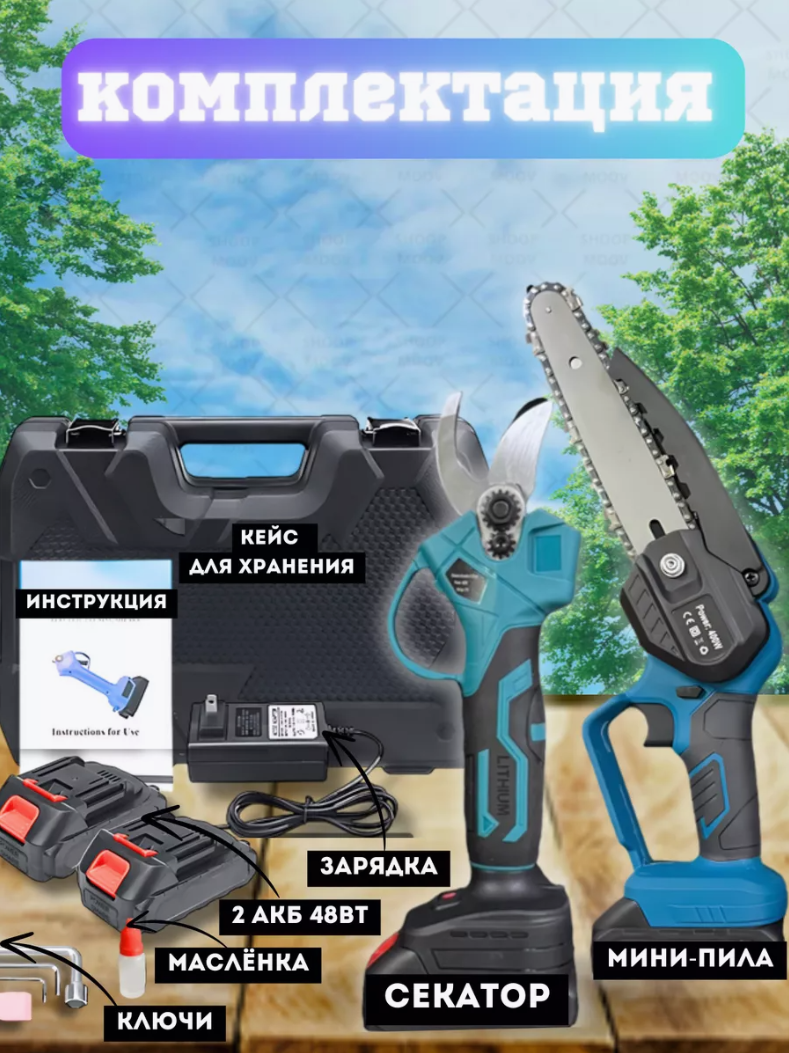 Купить Набор аккумуляторная пила и секатор (2 АКБ в комплекте)