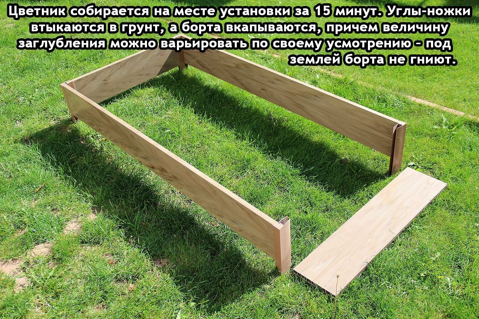 | Подробная комплектация | Борт «Торцевой» 500х180х20 мм. - 2 шт., борт «Продольный» 1000х180х20 мм. - 2 шт., F-угол - 4 шт., саморезы - 16 шт. Упаковка - картонная коробка. |