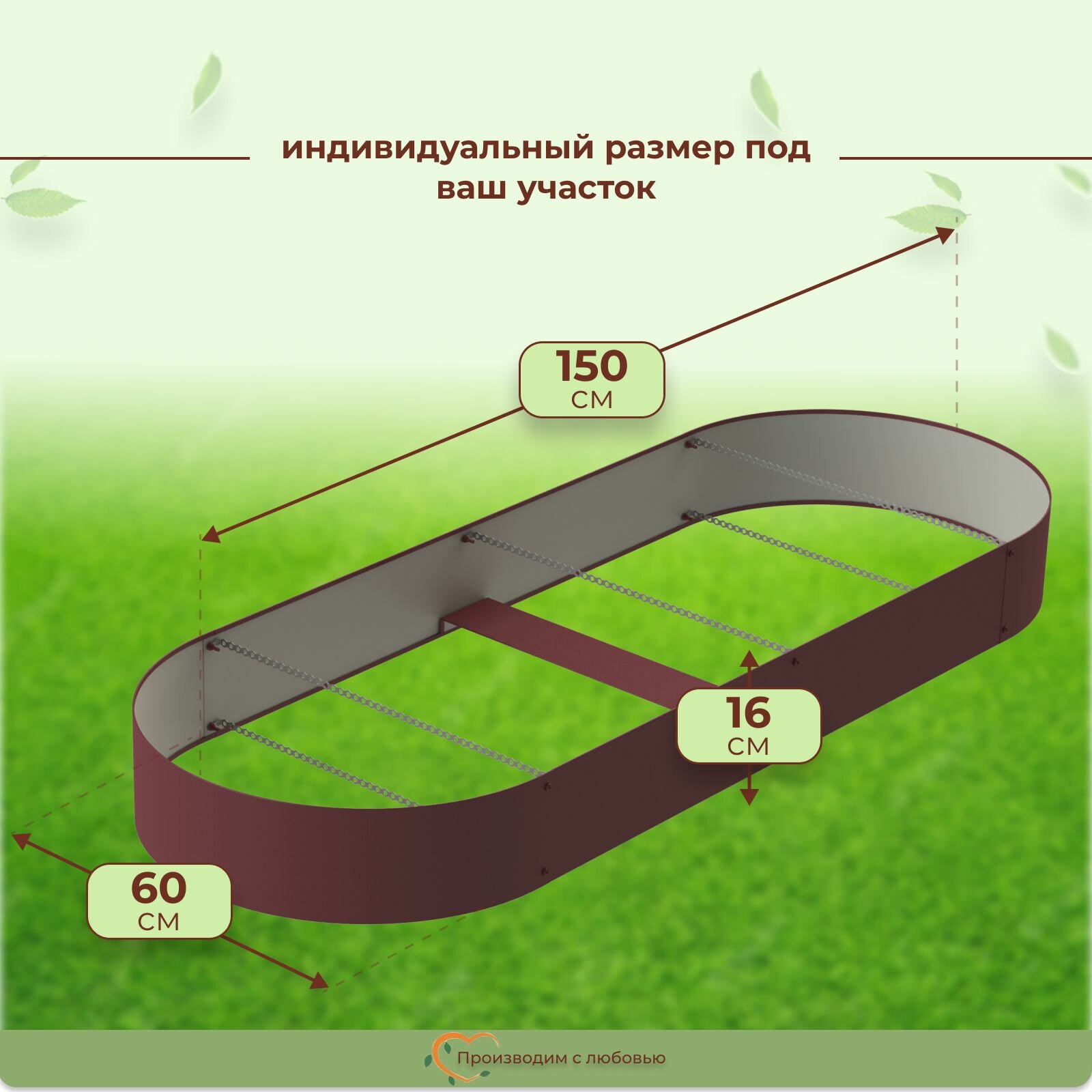 Грядка оцинкованная с полимерным покрытием овальная, 1.5х0.6 м, высота 16 см, цвет Вишня