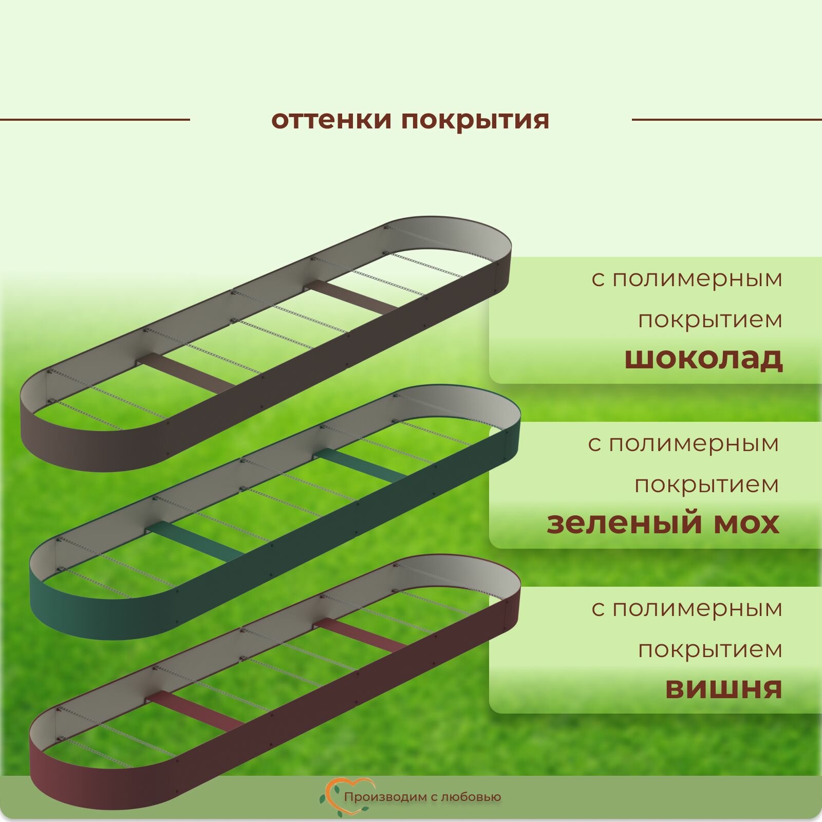 Грядки оцинкованные с полимерным покрытием овальные 3 шт., размер 1.5х0.6 м, высота 16 см, цвет Шоколад