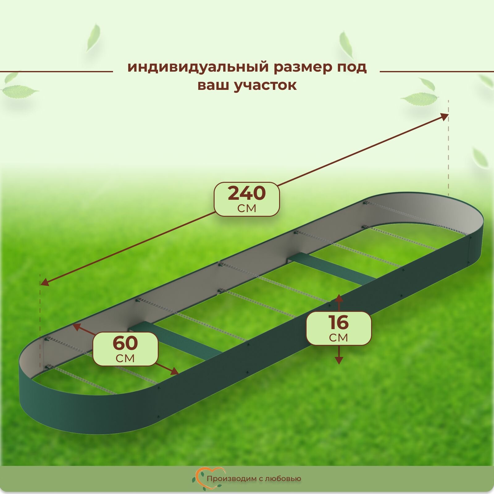 Грядка оцинкованная с полимерным покрытием овальная 1 шт., 3.3х0.6 м, высота 16 см, цвет Зеленый мох