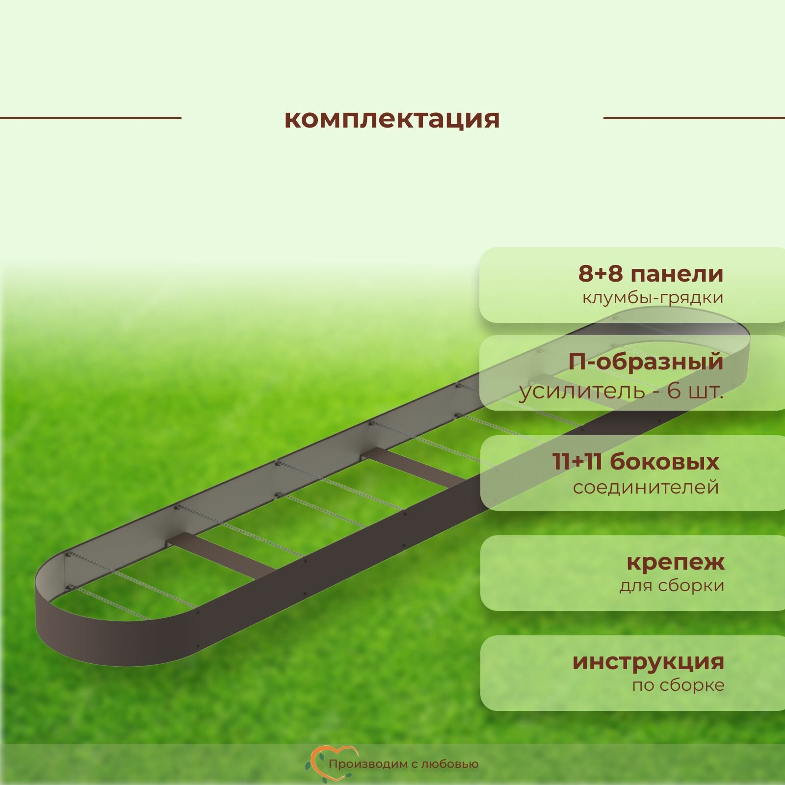 Грядка оцинкованная с полимерным покрытием овальная 3 шт., 3.3х0.6 м, высота 16 см, цвет Шоколад