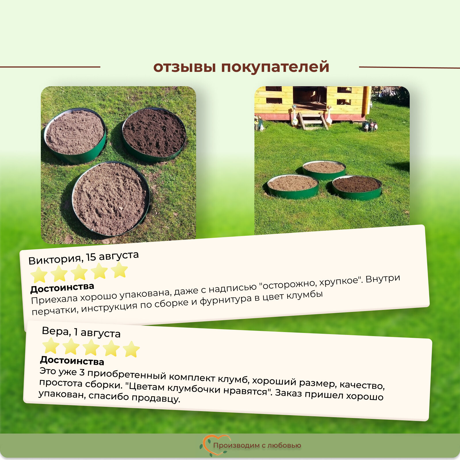 Ниже Вы можете прочитать отзывы на Клумба садовая для цветов с полимерным покрытием, цвет Зеленый мох, диаметр 60 см - 3 шт., ознакомится с подробными характеристиками, посмотреть интересные обзоры и фотографии на Клумба садовая для цветов с полимерным покрытием, цвет Зеленый мох, диаметр 60 см - 3 шт..