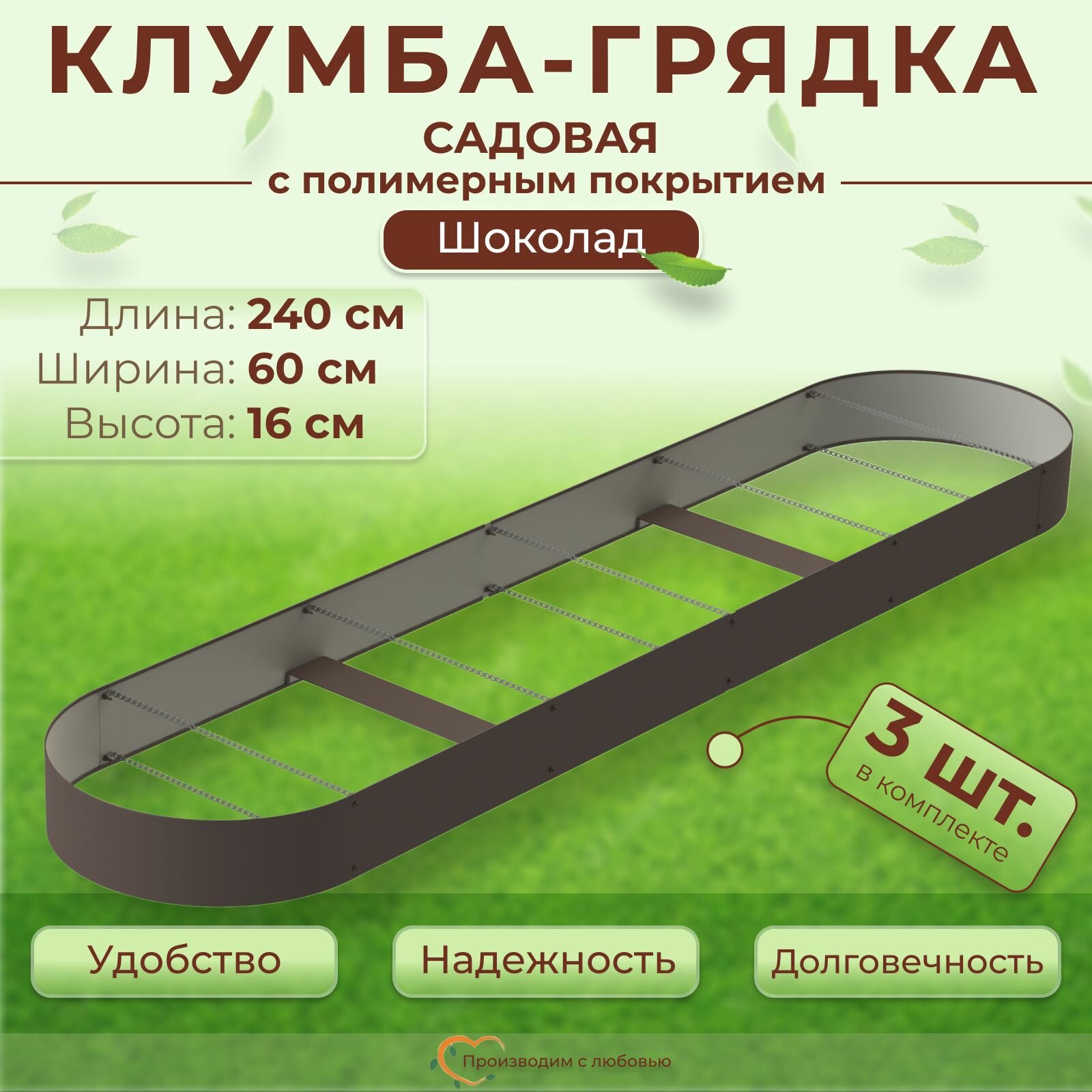 Купить Грядки оцинкованные с полимерным покрытием овальные 3 шт., размер 2.4х0.6 м, высота 16 см, цвет Шоколад