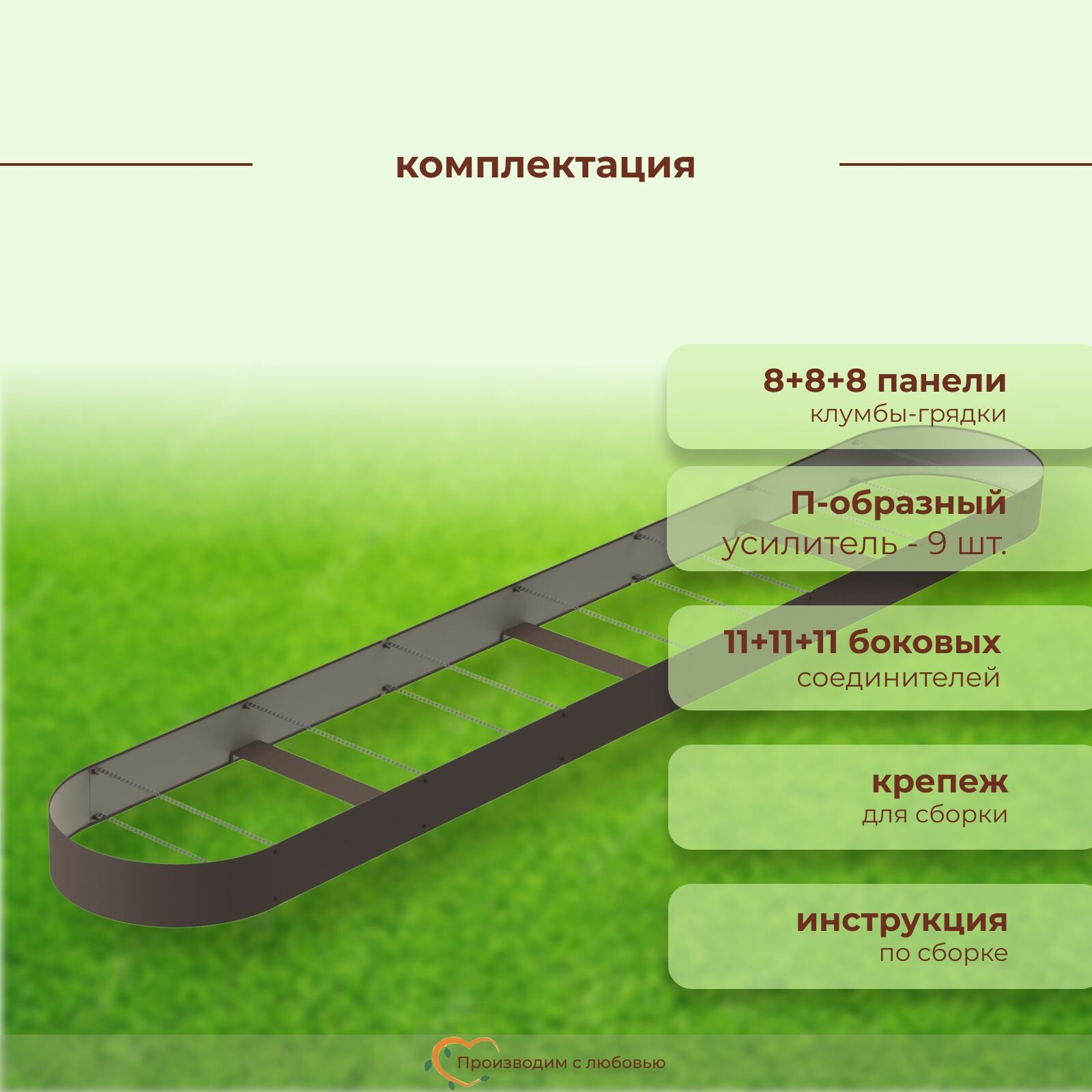 Грядка оцинкованная с полимерным покрытием овальная 2 шт., 3.3х0.6 м, высота 16 см, цвет Шоколад
