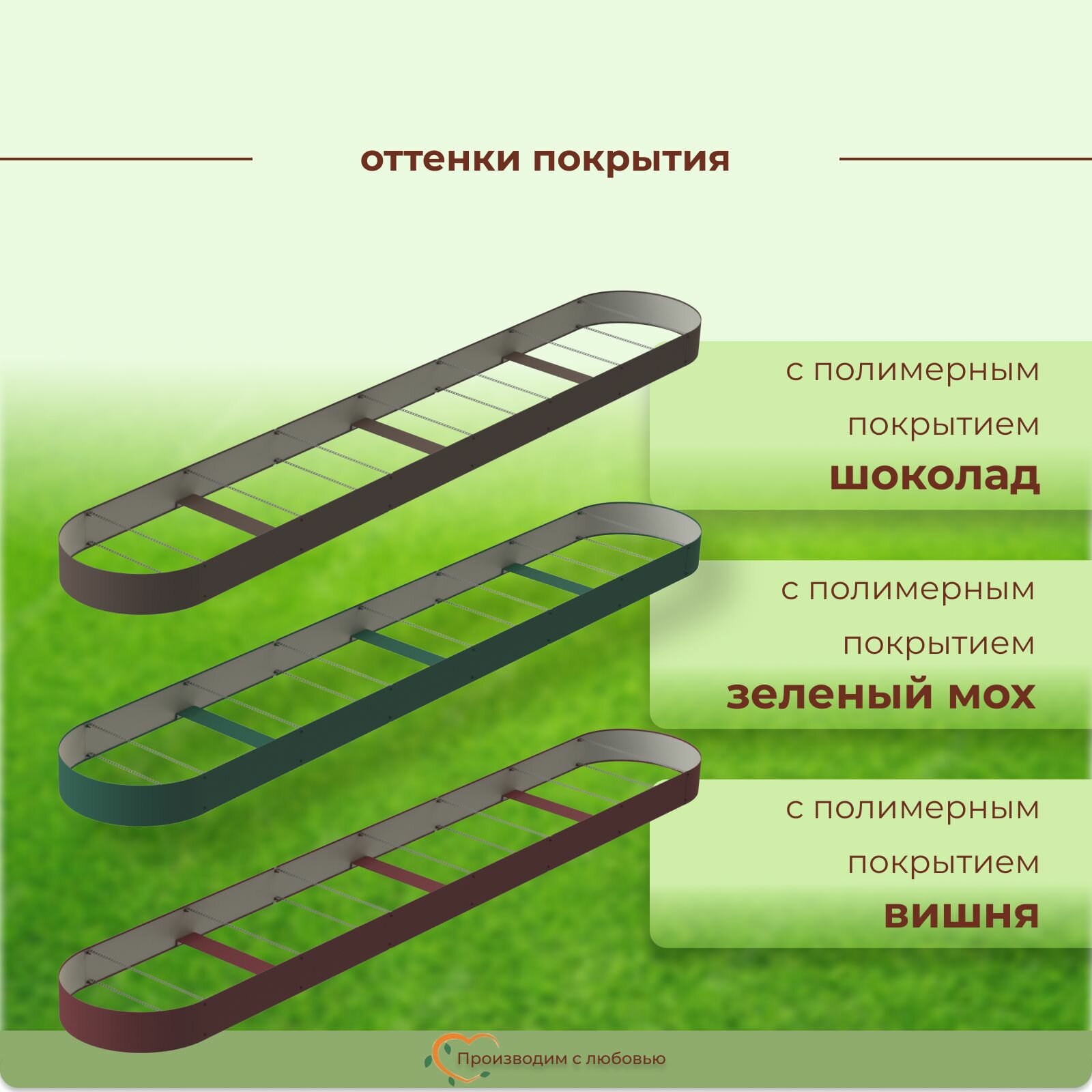 СохранитьГрядка оцинкованная с полимерным покрытием овальная 3 шт., 3.3х0.6 м, высота 16 см, цвет Зеленый мох интересное: