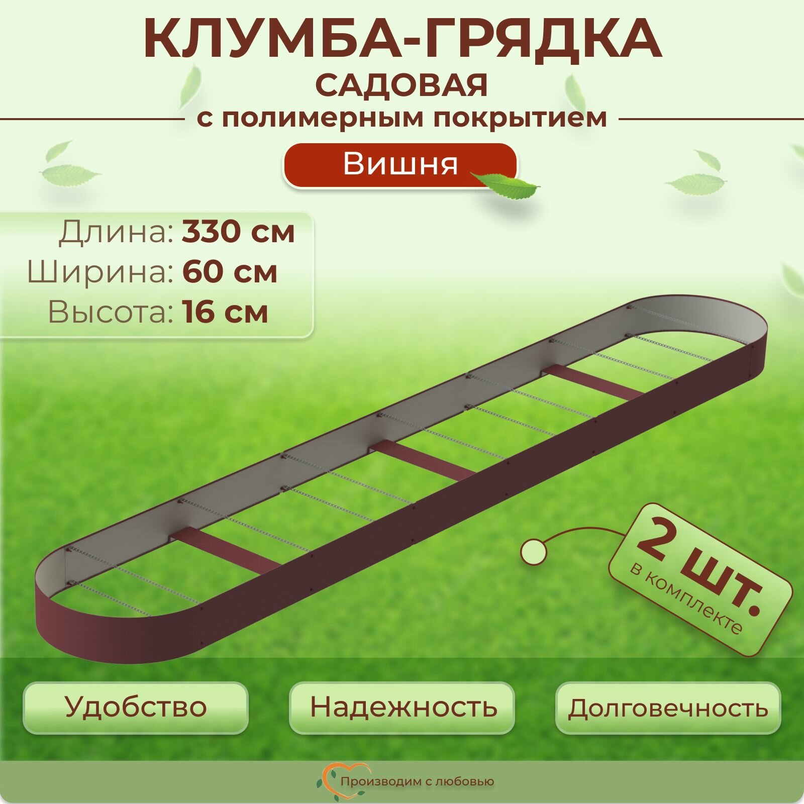Купить Грядка оцинкованная с полимерным покрытием овальная 2 шт., 3.3х0.6 м, высота 16 см, цвет Вишня