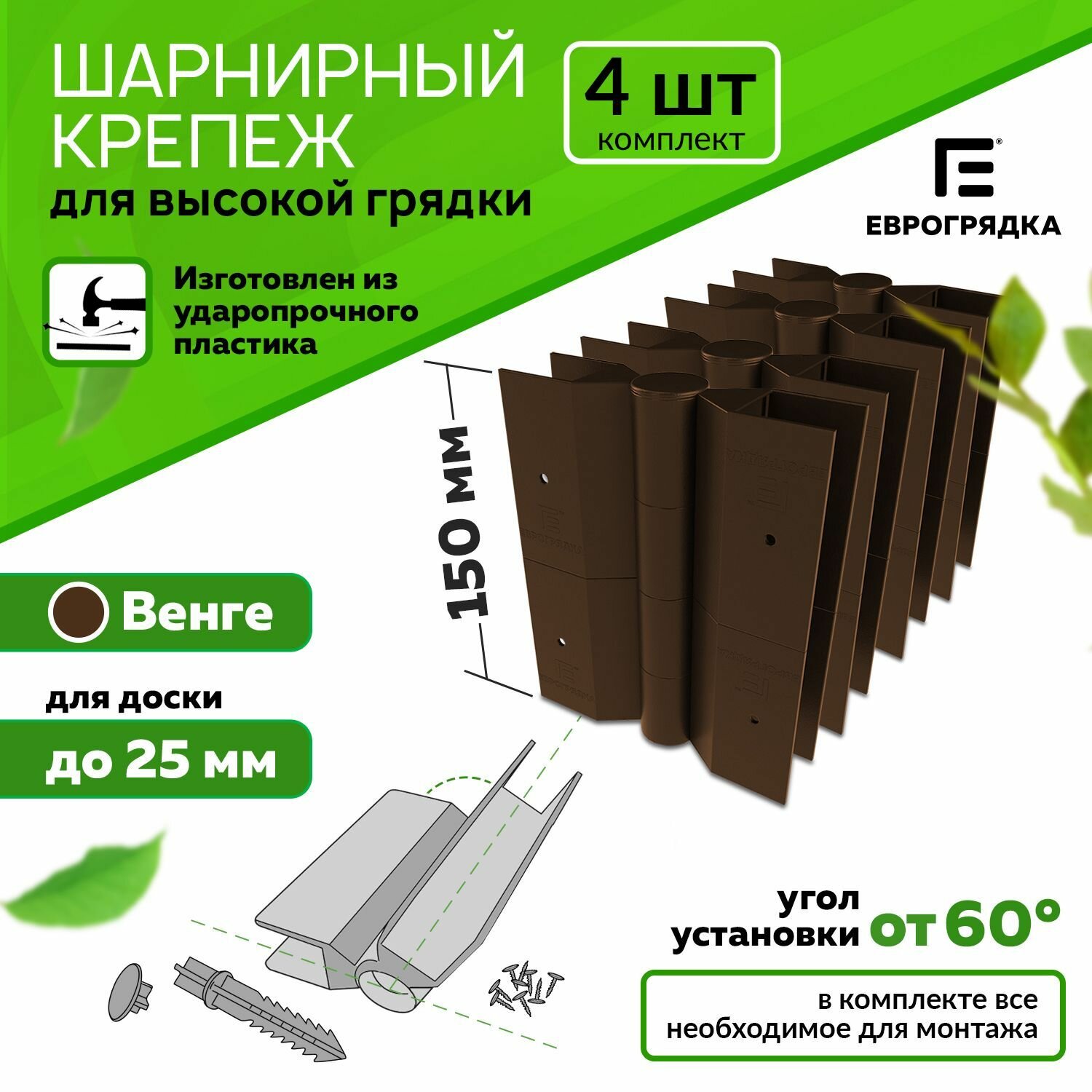 Купить Комплект из 4-х стыковочных элементов для грядок и клумб 150x25 мм, Еврогрядка, цвет: коричневый