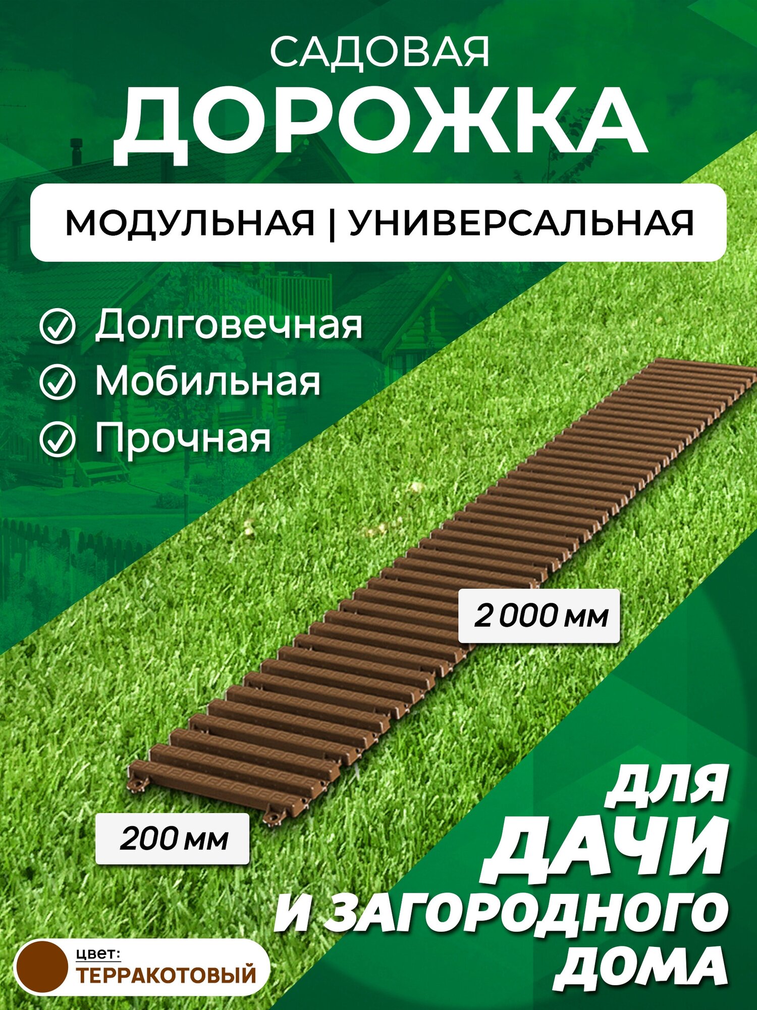 Садовая дорожка 2 м ширина 20 см, цвет: терракота интересное: