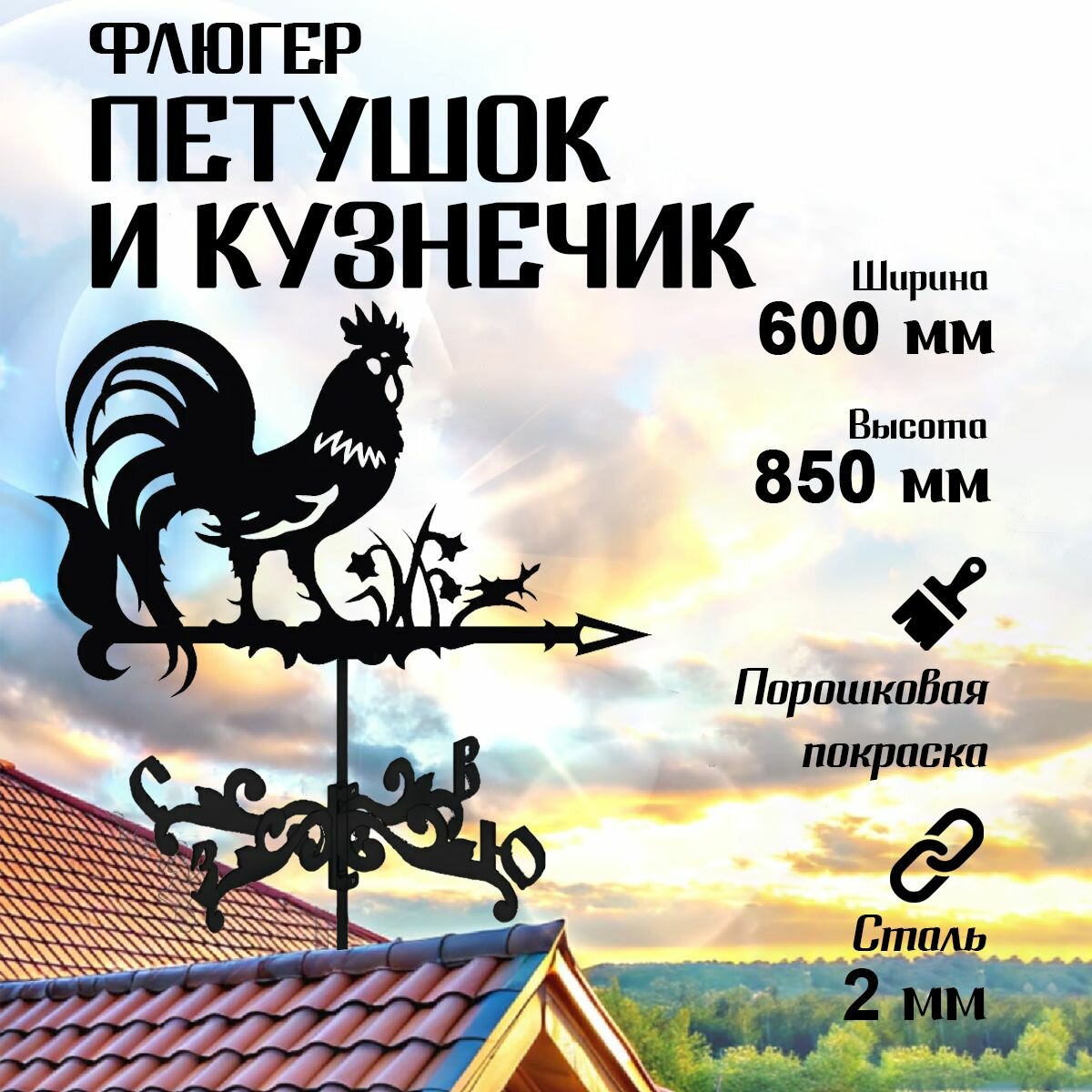 Флюгер, украшение, декор на крышу для дачи, для дома, "Петушок и кузнечик" большой 600х850 мм интересное: