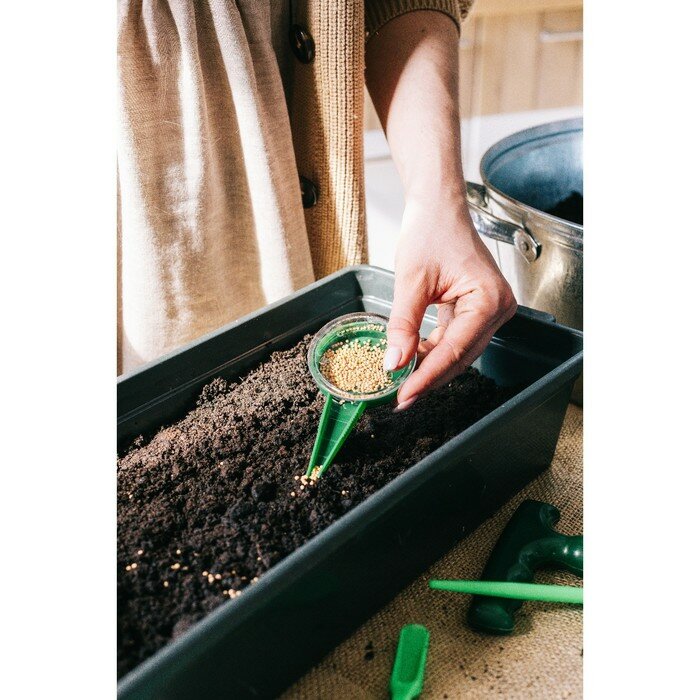 Сеялка для семян КНР ручная, длина 12 см, пластик, зеленая интересное: