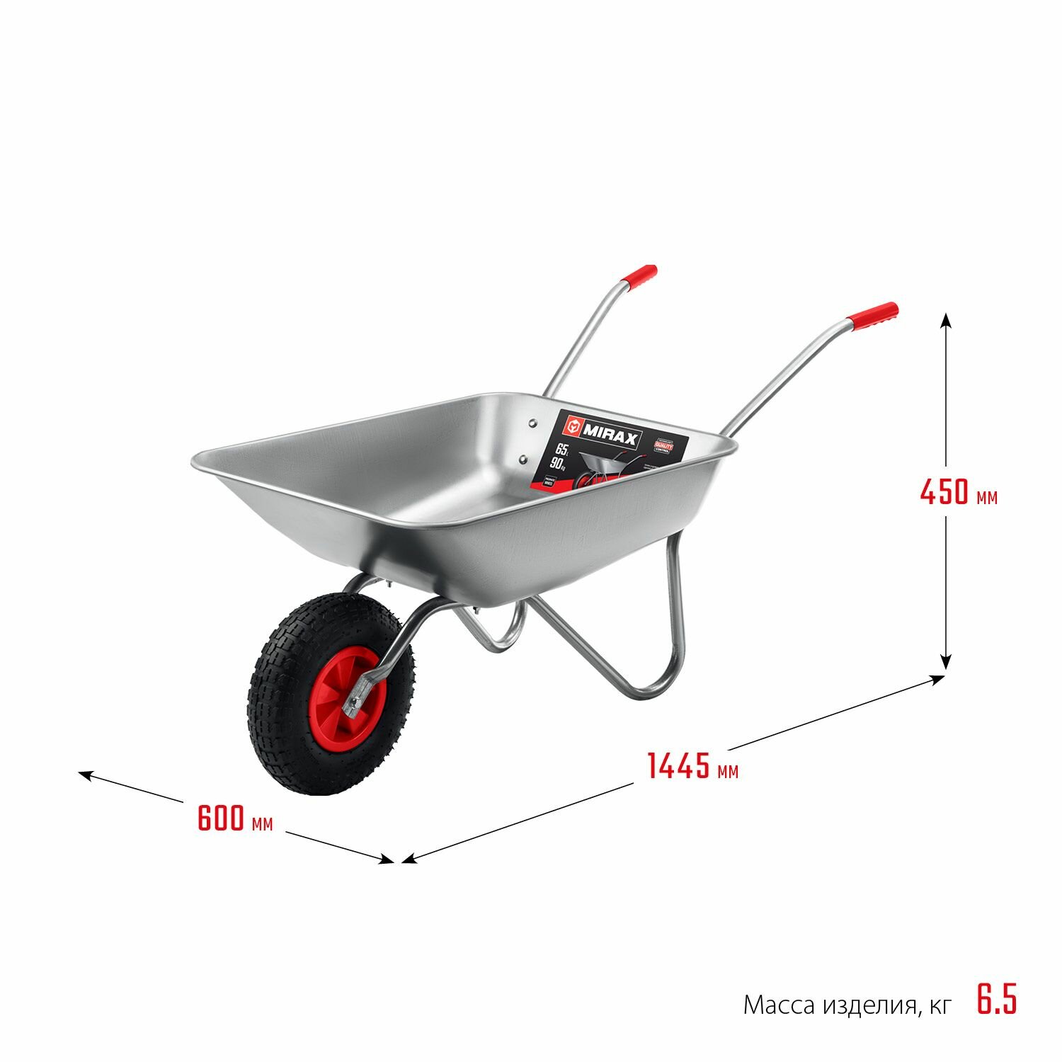 Тачка садовая одноколесная, грузоподъёмность 90 кг, объём 65 л, оцинкованная сталь, MIRAX MX-1, 39900 интересное: