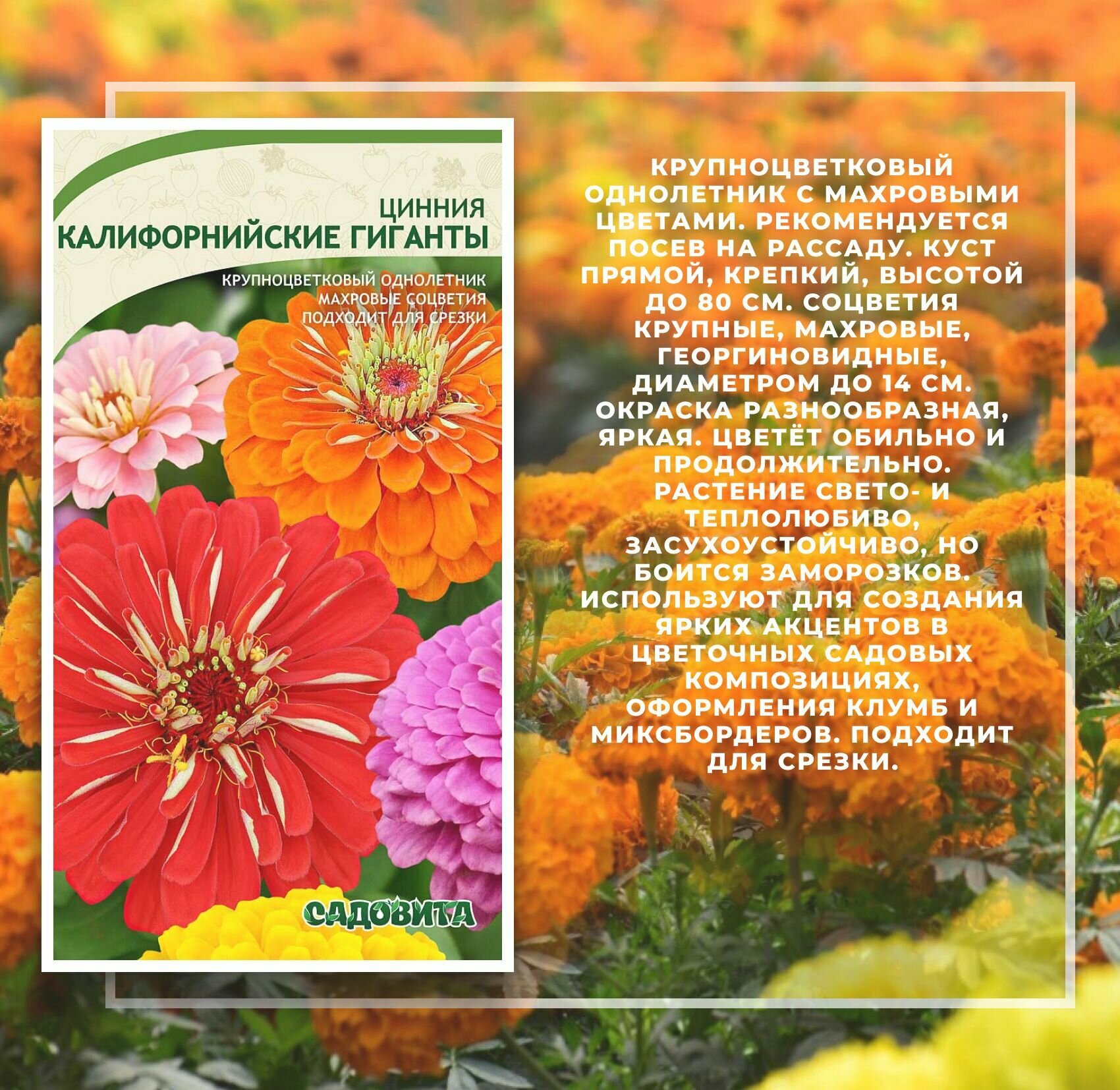 Семена Цинии "Цинии Калифорнийские Гиганты" интересное: