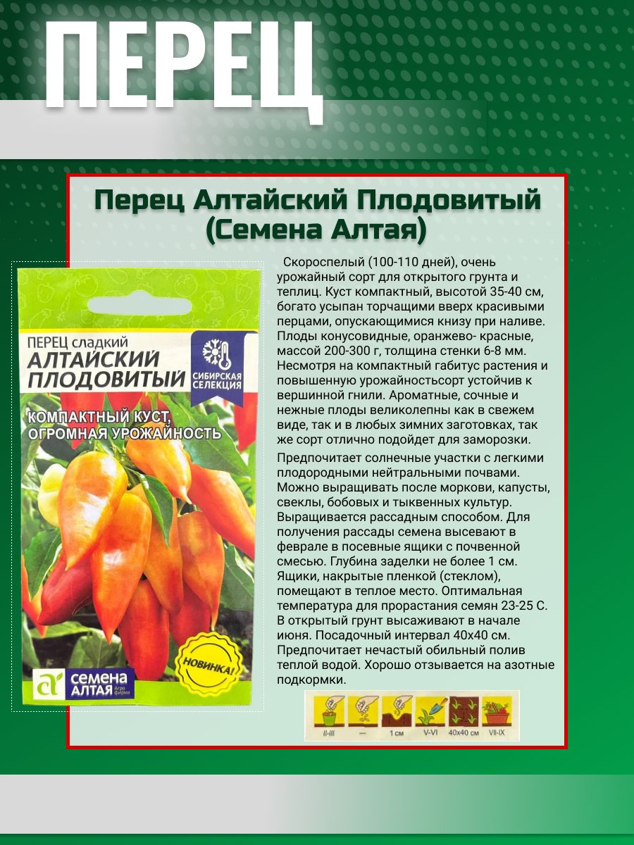 Семена Перец сладкий "Алтайский Плодовитый", Сем. Алт, ц/п, 0,1 г интересное: