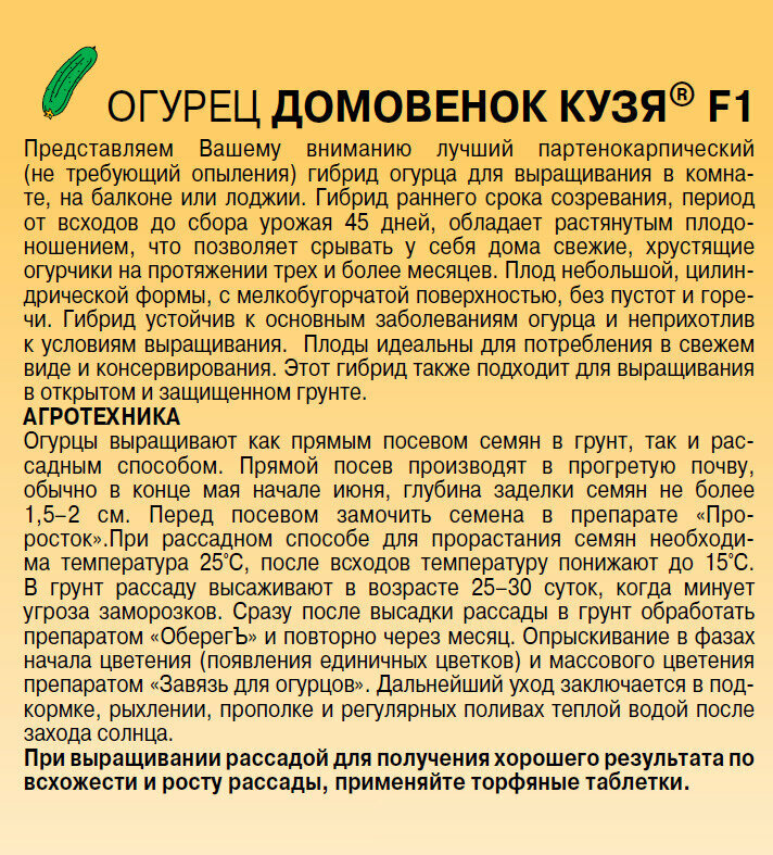 Огурец Домовенок Кузя F1 0.3г Парт Ранн (Цветущий Сад) интересное: