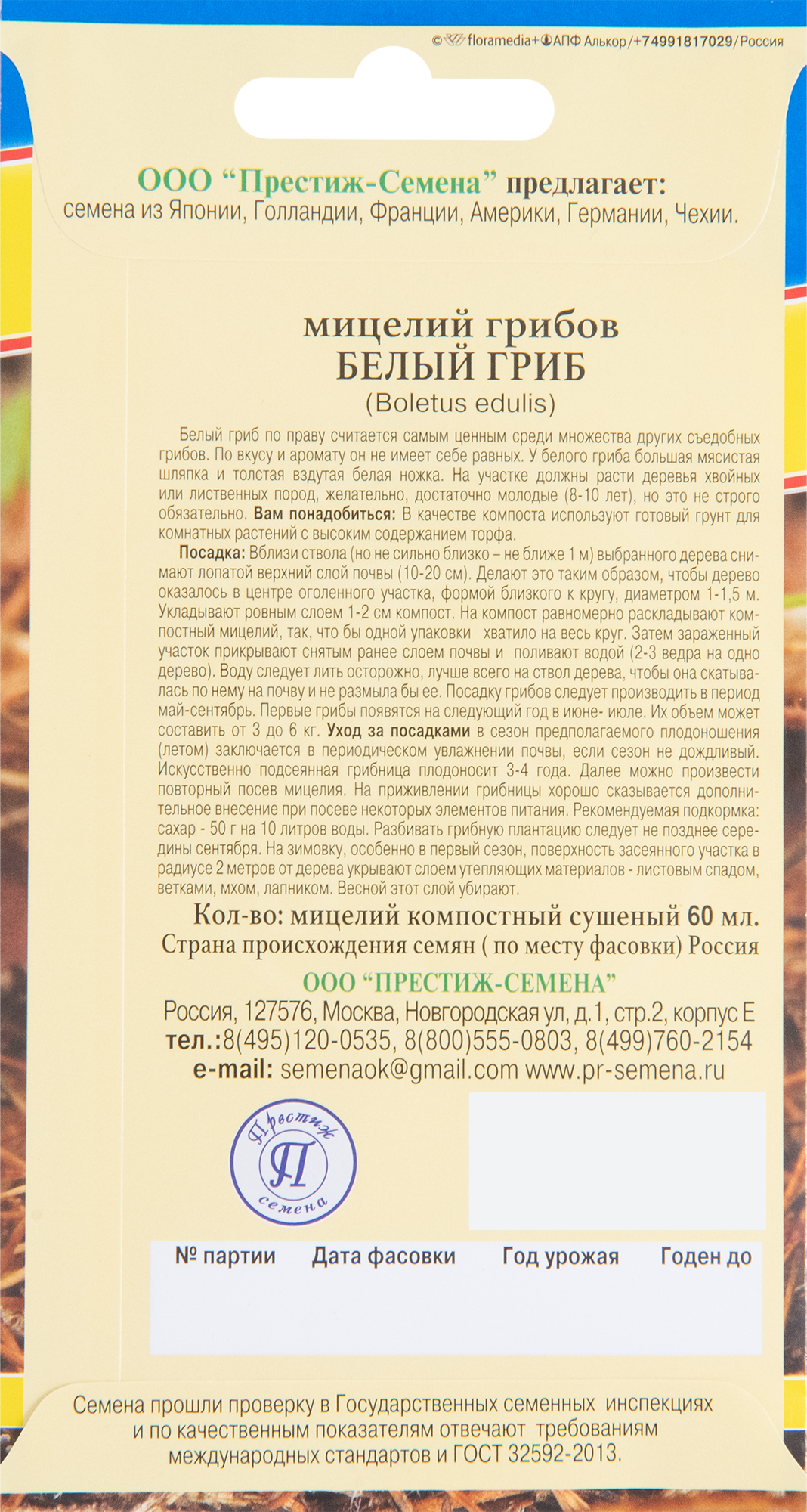 Мицелий Белый гриб 60мл (Престиж) интересное: