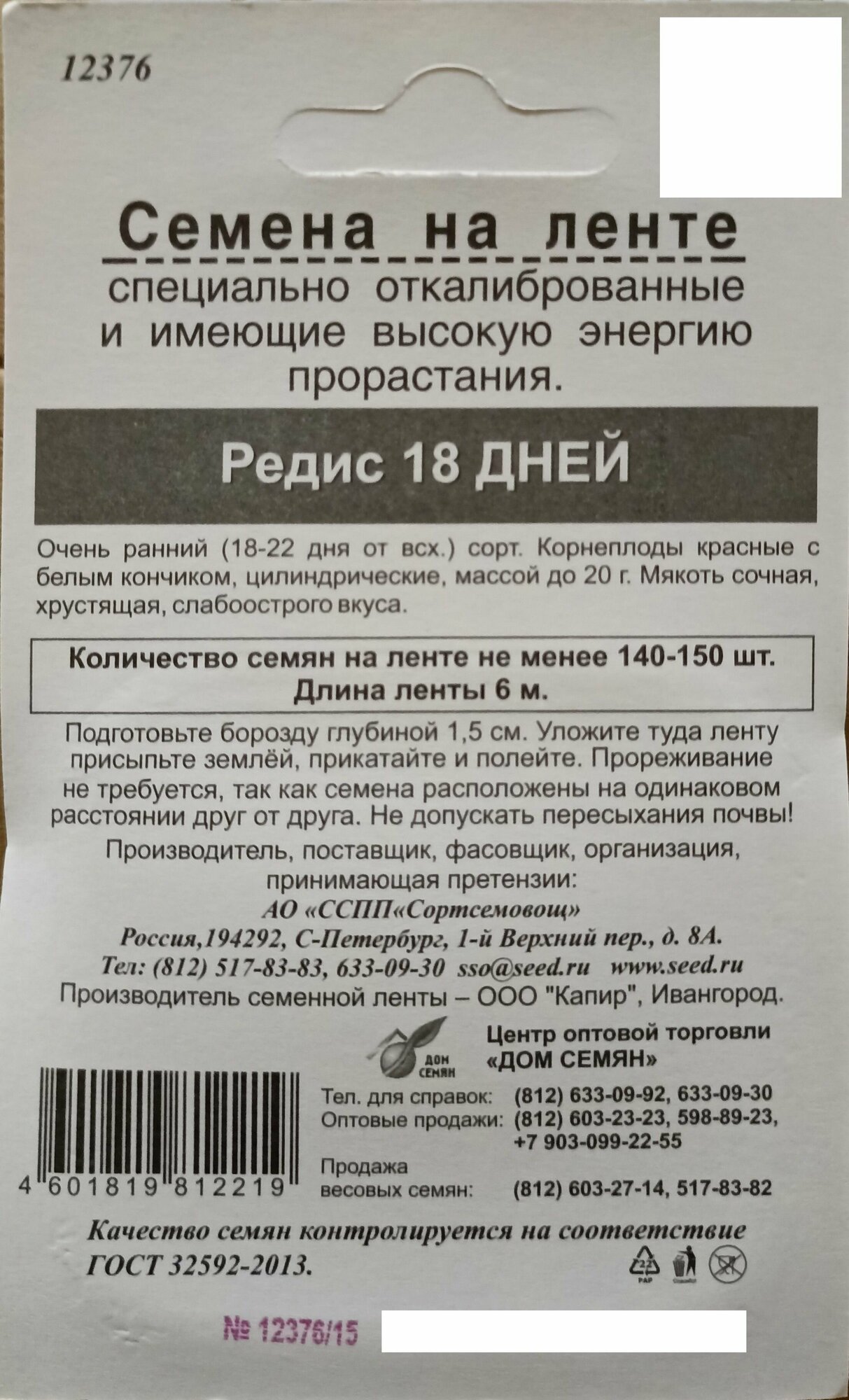 Ниже Вы можете прочитать отзывы на Редис 18-ти дневный семена на ленте, откалиброванные и имеющие высокую энергию прорастания, не требует прореживания, 140 семян, ознакомится с подробными характеристиками, посмотреть интересные обзоры и фотографии на Редис 18-ти дневный семена на ленте, откалиброванные и имеющие высокую энергию прорастания, не требует прореживания, 140 семян.