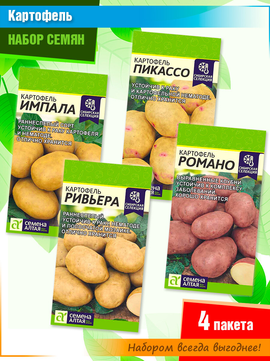 Набор семян семенного картофеля Пикассо, Романо, Ривьера от Семена Алтая (3 пачки)