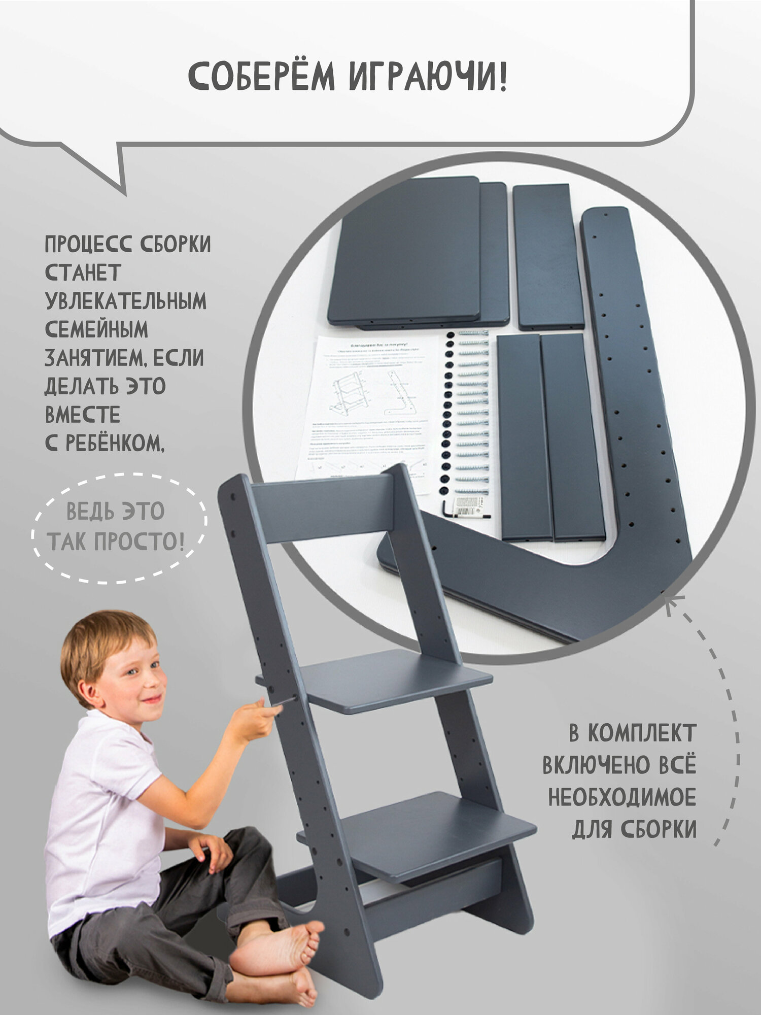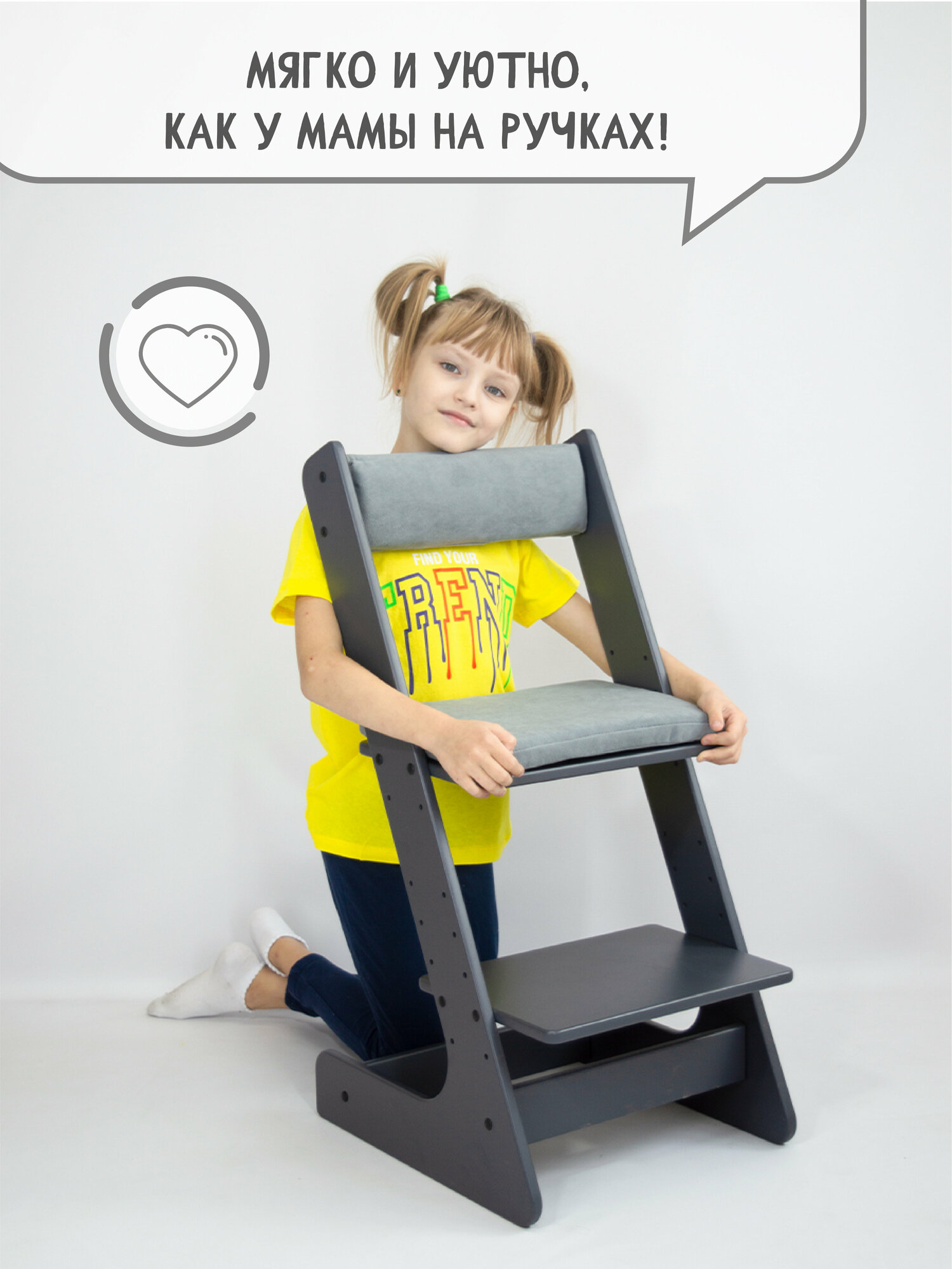Купить Растущий стул графит для детей школьника с подушкой на стул со спинкой, цвет серый
