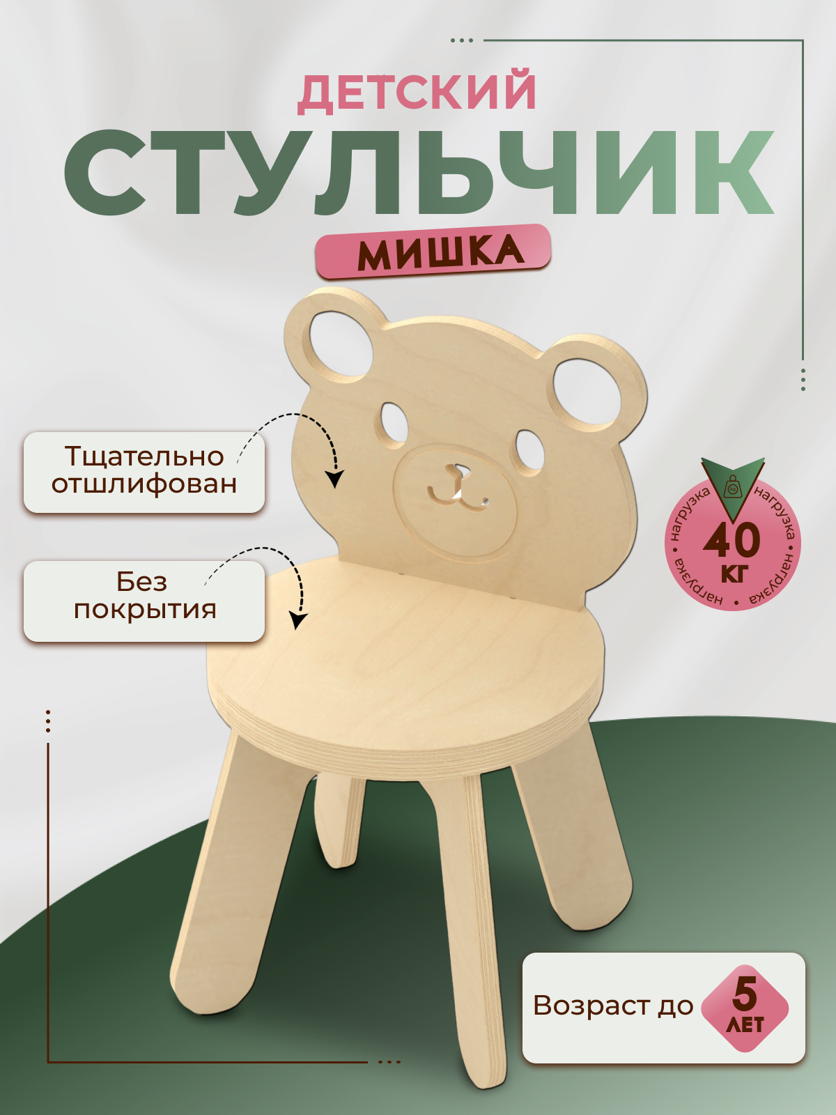 Стул Игры с пользой Мишка деревянный отшлифованный для детей интересное: