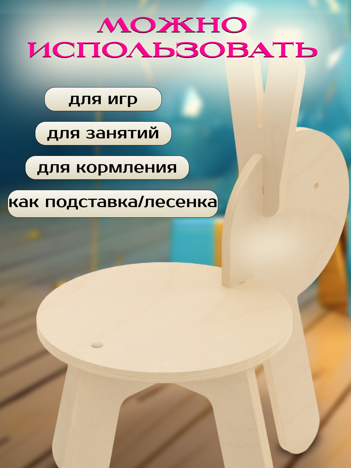 Стул-табурет Зайка Игры с пользой деревянный отшлифованный для детей интересное: