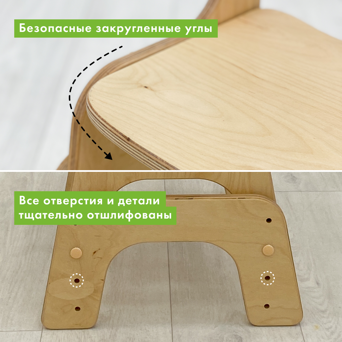 Детский стульчик Малышок, прозрачное масло, светло-серые подушки интересное: