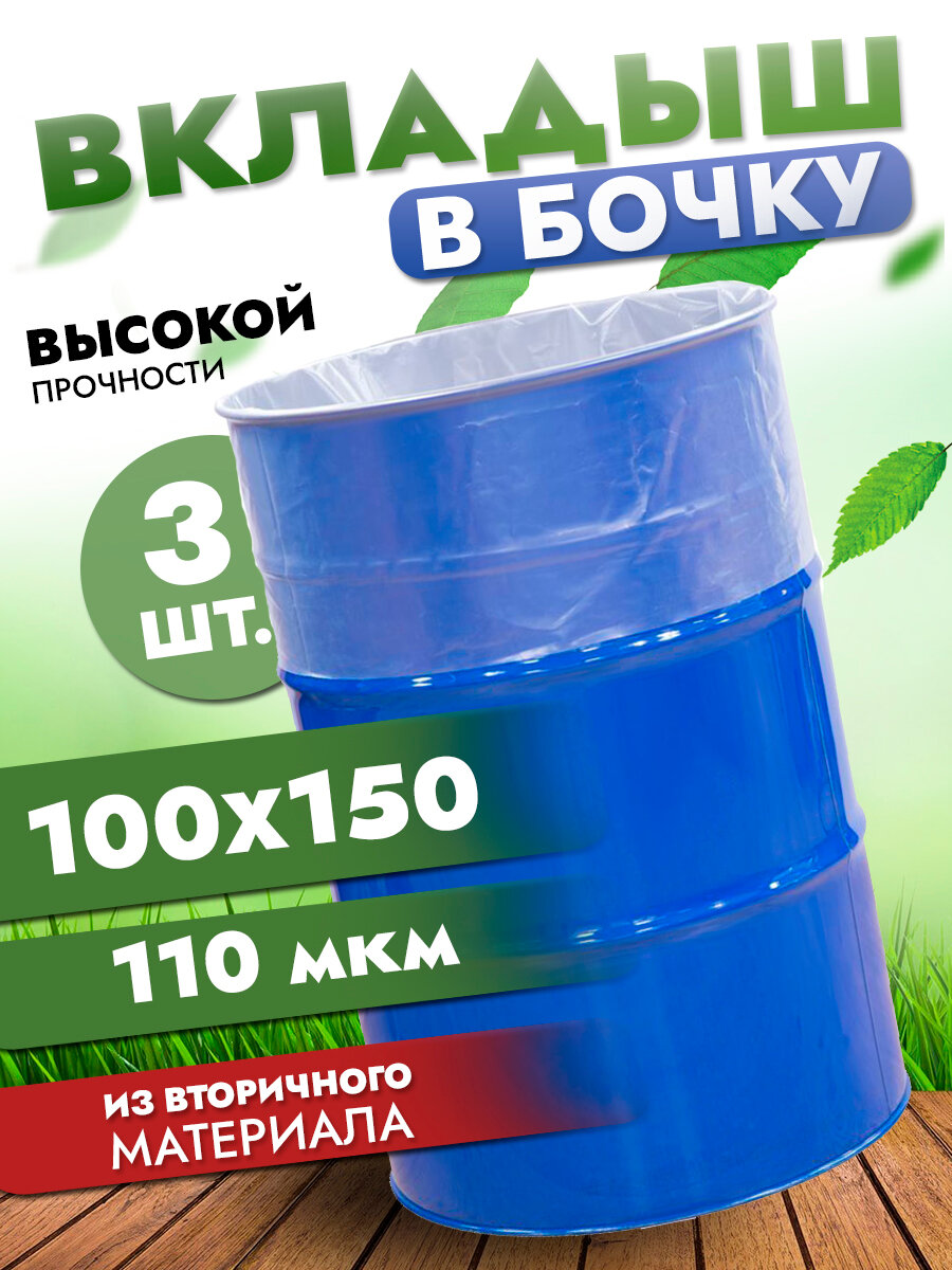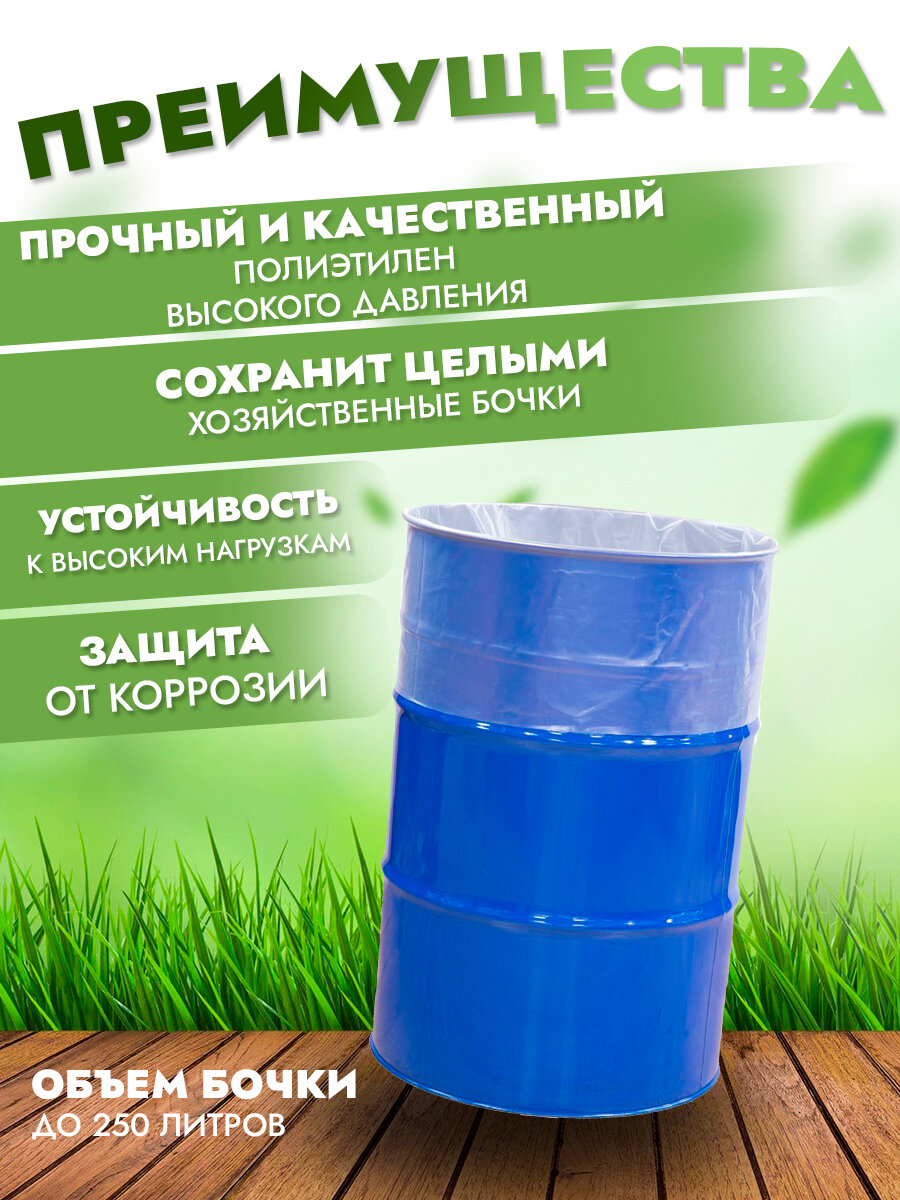 Вкладыш для 200 литровой бочки 100х150 мм, 110 мкр, полиэтиленовый мешок в бочку интересное: