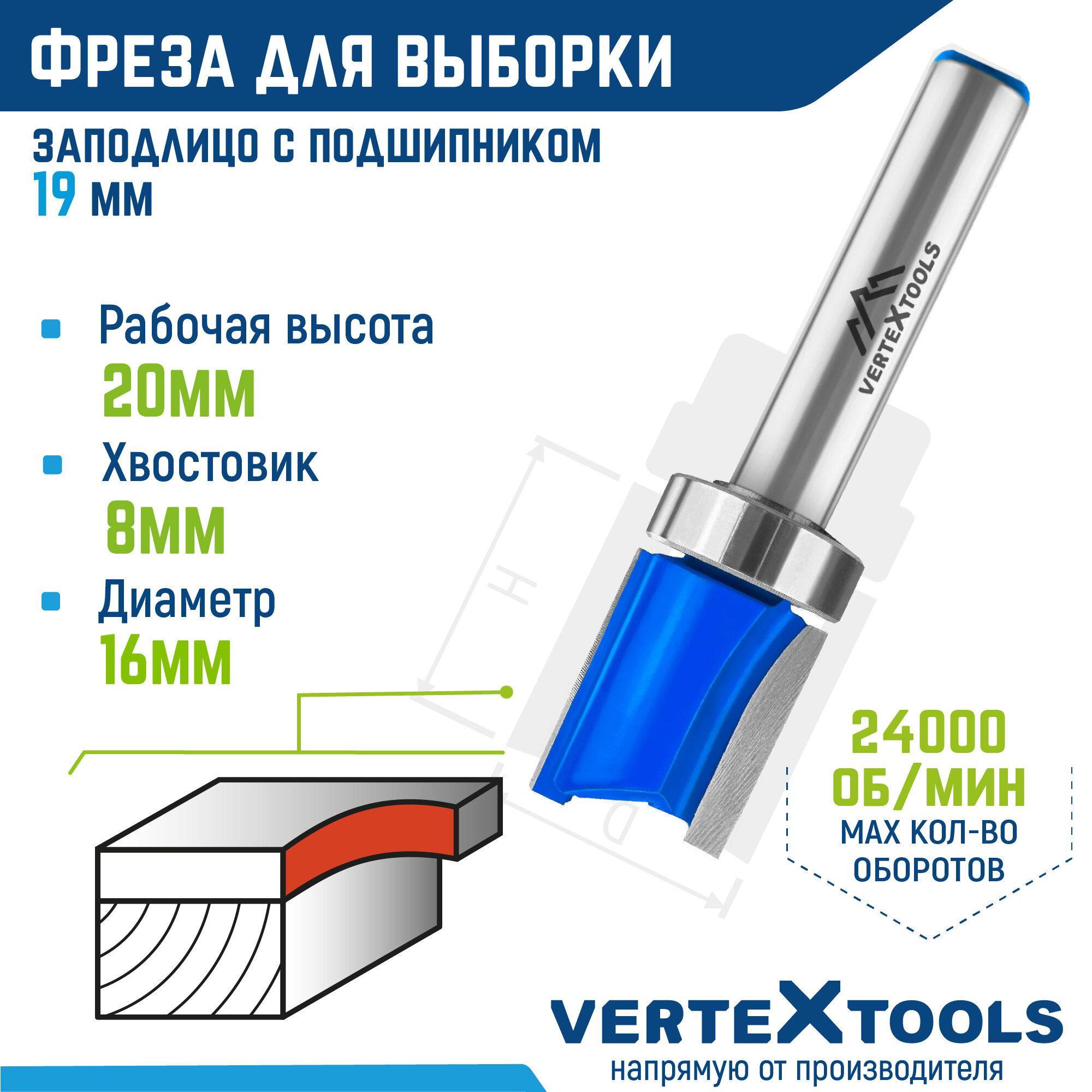 Фреза для выборки заподлицо VertexTools Ø 16 мм. / 8 мм. хвостовик, с верхним подшипником интересное:
