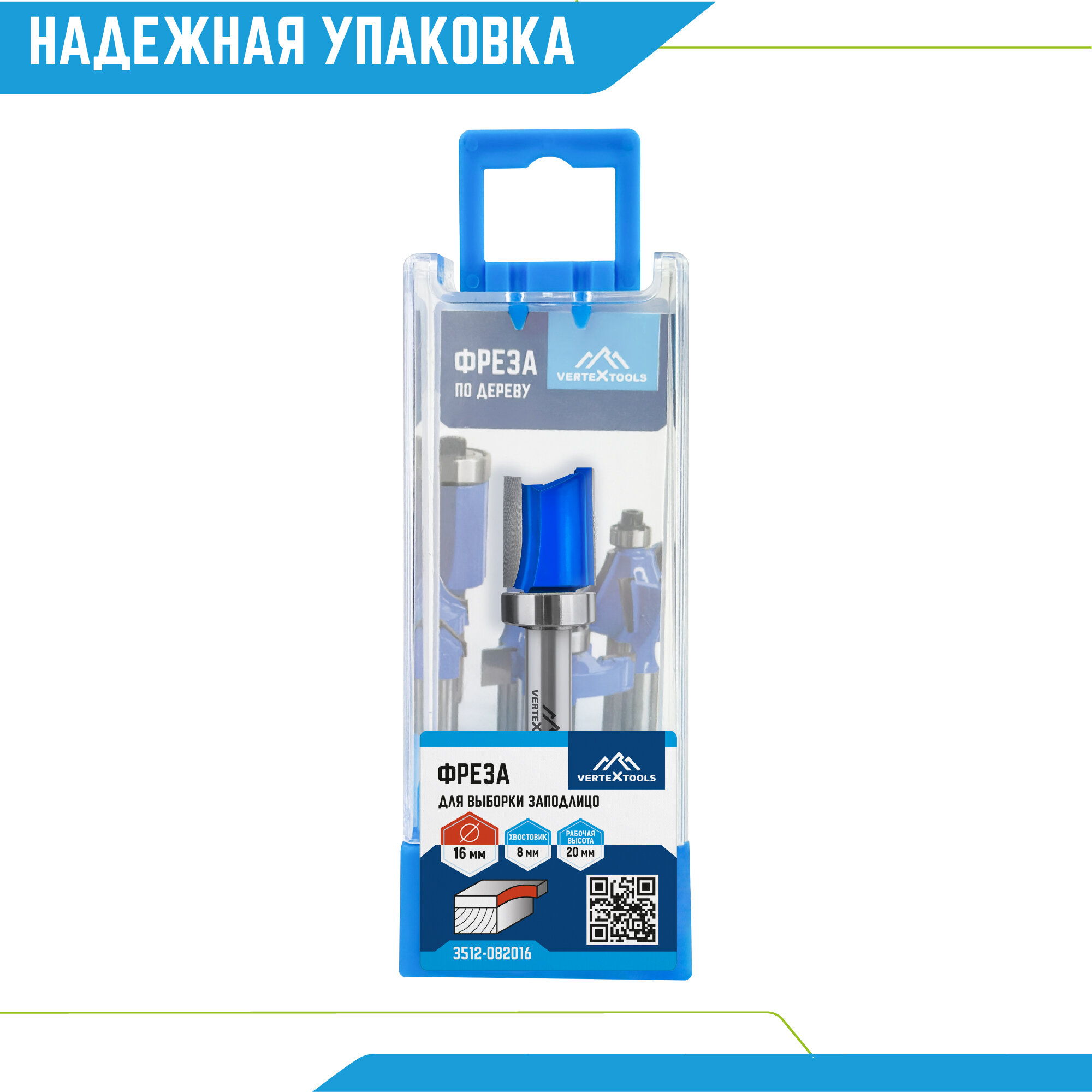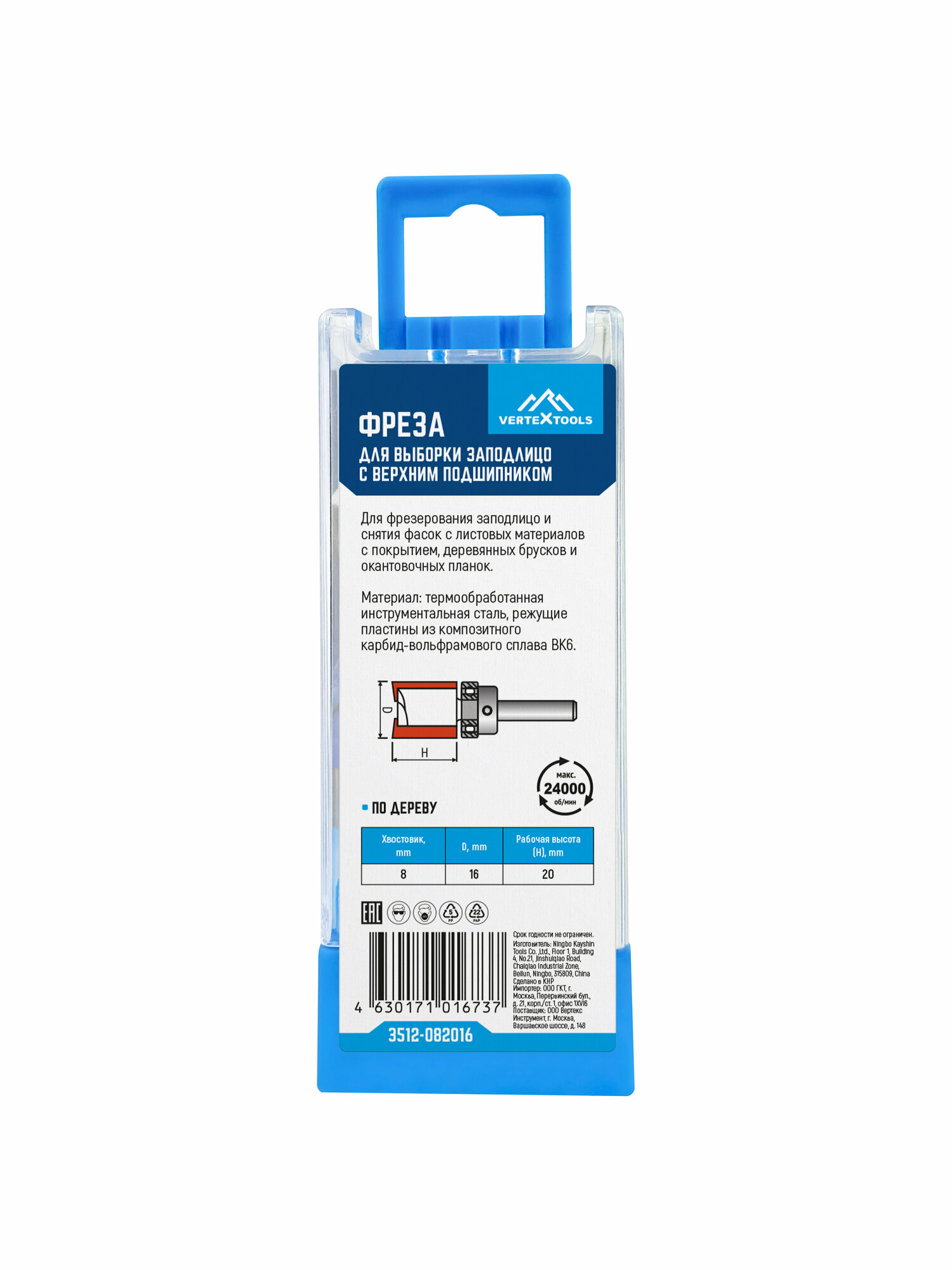 Купить Фреза для выборки заподлицо VertexTools Ø 16 мм. / 8 мм. хвостовик, с верхним подшипником