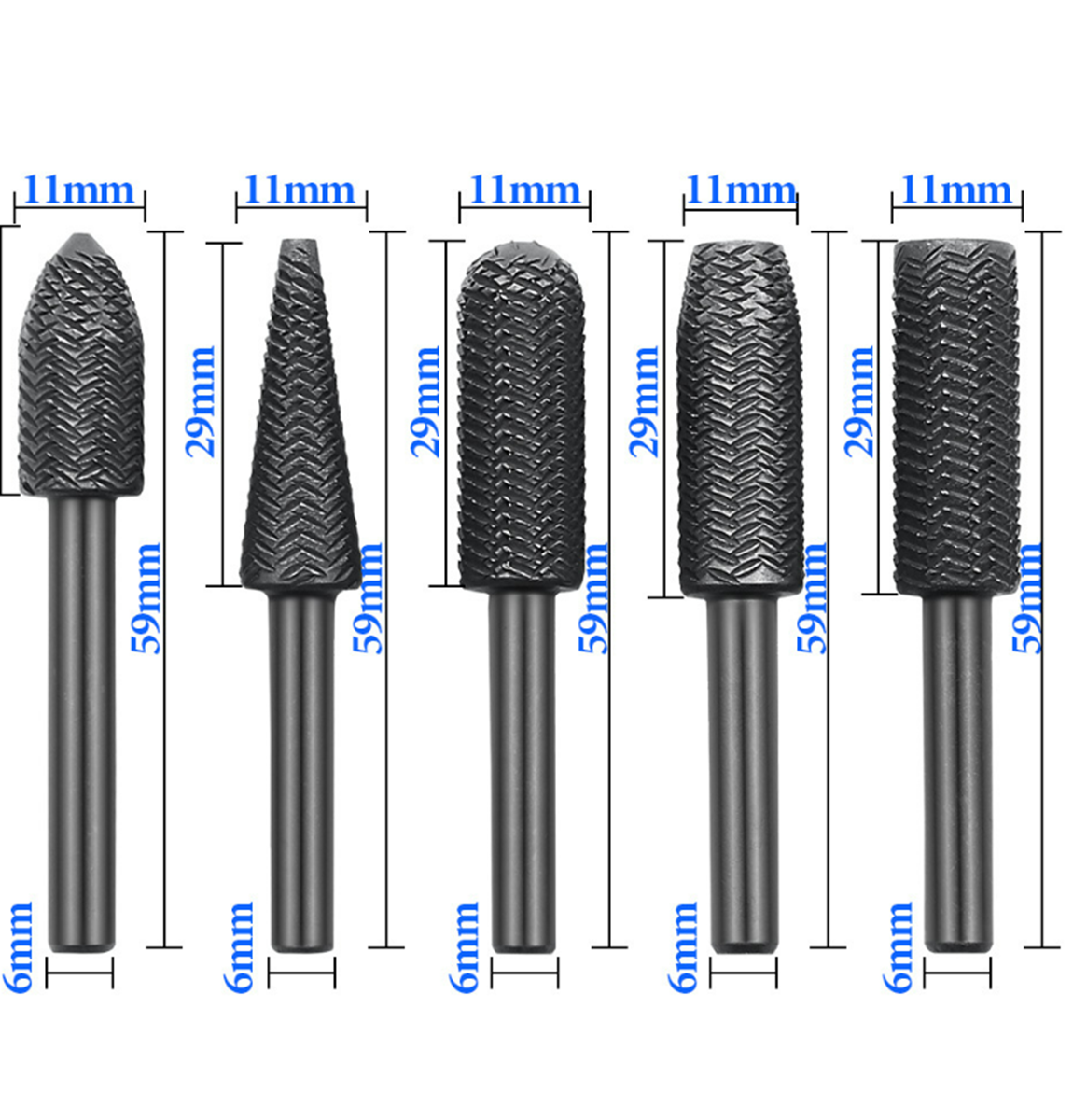Набор фрез Ekollon, для металла, 5 штук, диаметр 11мм, d хвостовика 6мм