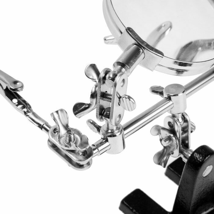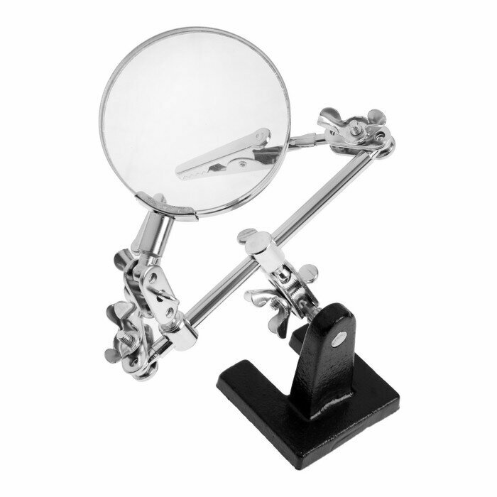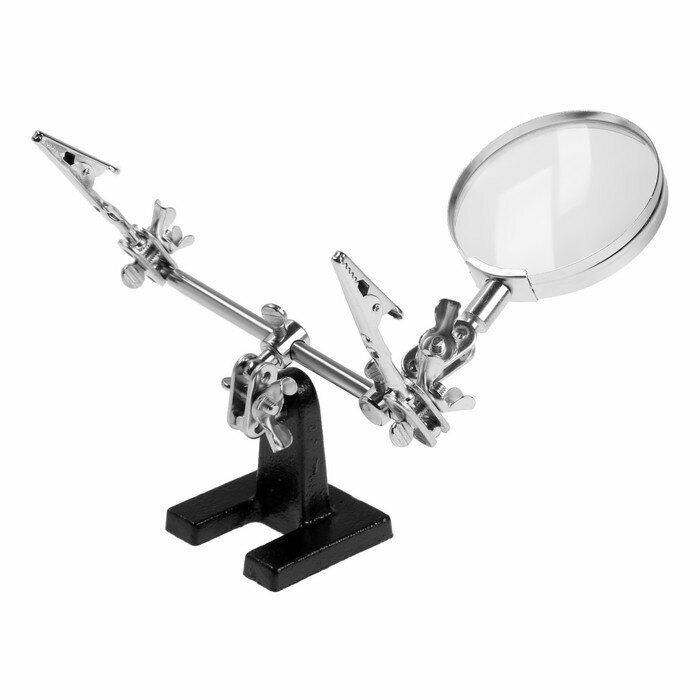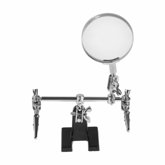 | Дополнительная информация | Держатель прецизионный с зажимами и лупой сочетает в себе 2 зажима типа "крокодил" и лупу, что позволяет закреплять необходимые детали и производить их 2,5-кратное увеличение. Положение и поворот линзы можно регулировать. Диаметр линзы - 62мм. |