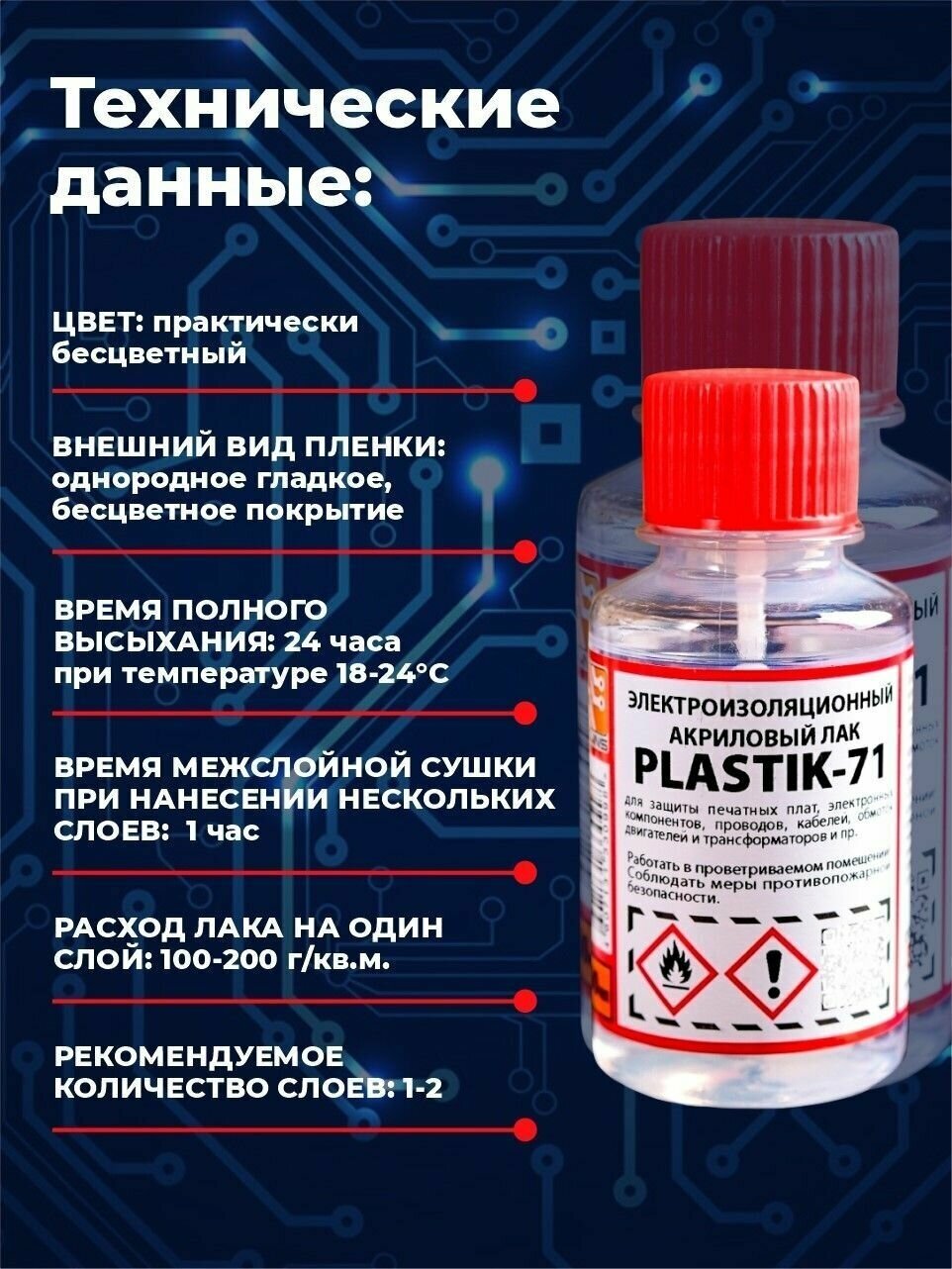 "Plastik-71" - лак электроизоляционный акриловый для печатных плат, 22мл с кистью