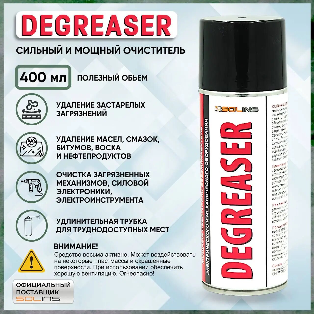 Мощный очиститель, обезжириватель Solins DEGREASER, 400 мл (аэрозоль) интересное: