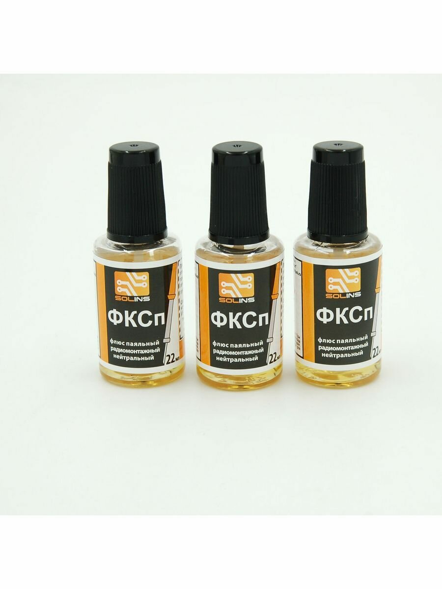 СохранитьФлюс паяльный Solins ФКСп нейтральный, радиомонтажный, спирто-канифольный, с сосновой канифолью для пайки печатных плат, меди медных проводов, микросхем, жидкий с кисточкой, набор 3 шт. по 20 мл интересное: