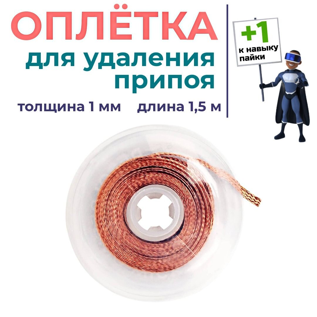 Медная оплетка для удаления припоя. 1мм Х 1.5м. Инструмент для пайки интересное: