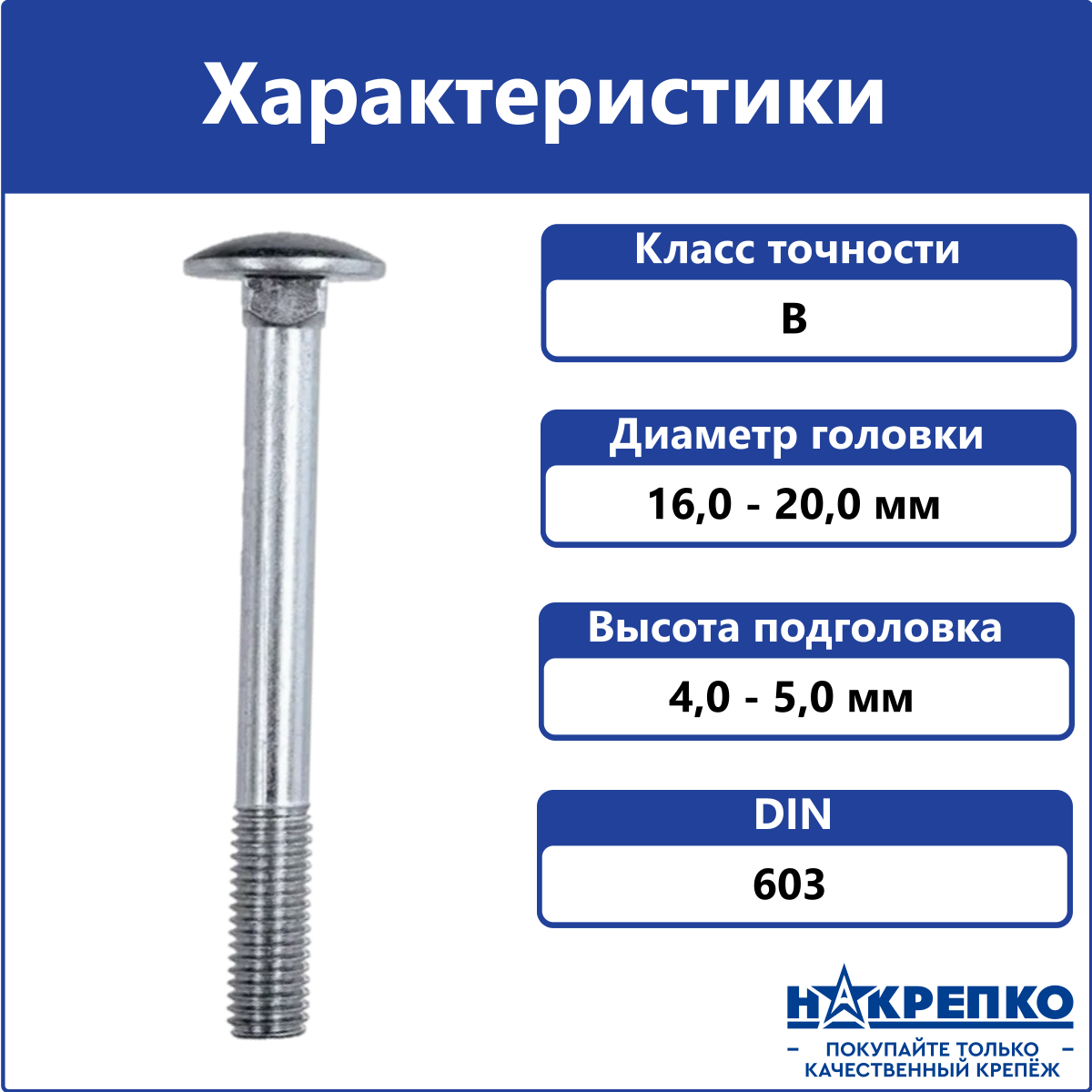 Болт мебельный с гайкой и шайбой М8 х 60 мм 1 шт Накрепко