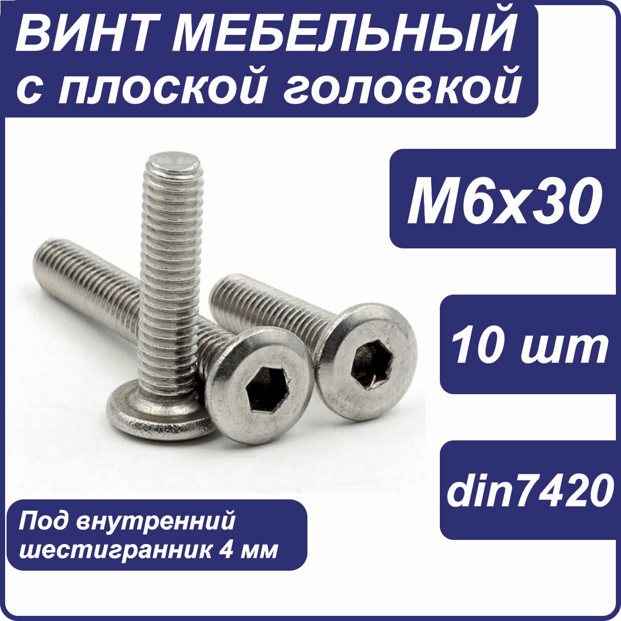 Винт М6х30 с плоской головкой внутренним шестигранником. DIN7420 интересное: