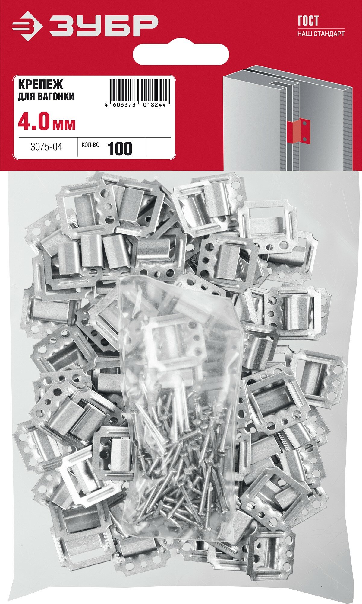 ЗУБР Кляймер 4 мм, крепеж для вагонки, цинк, 100 шт (3075-04)