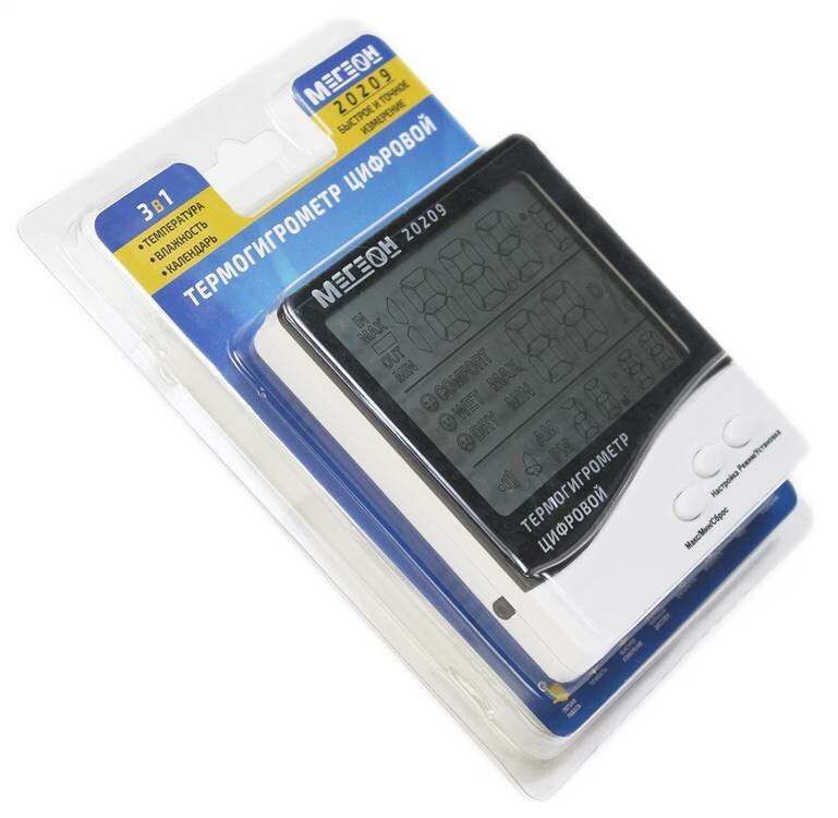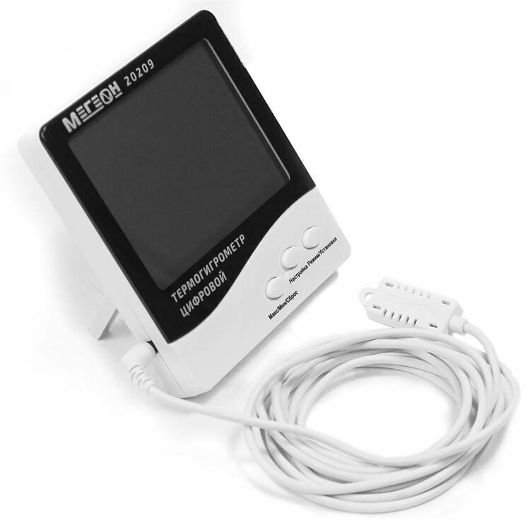 Цифровой настольный термогигрометр с выносным датчиком мегеон 20209 интересное: