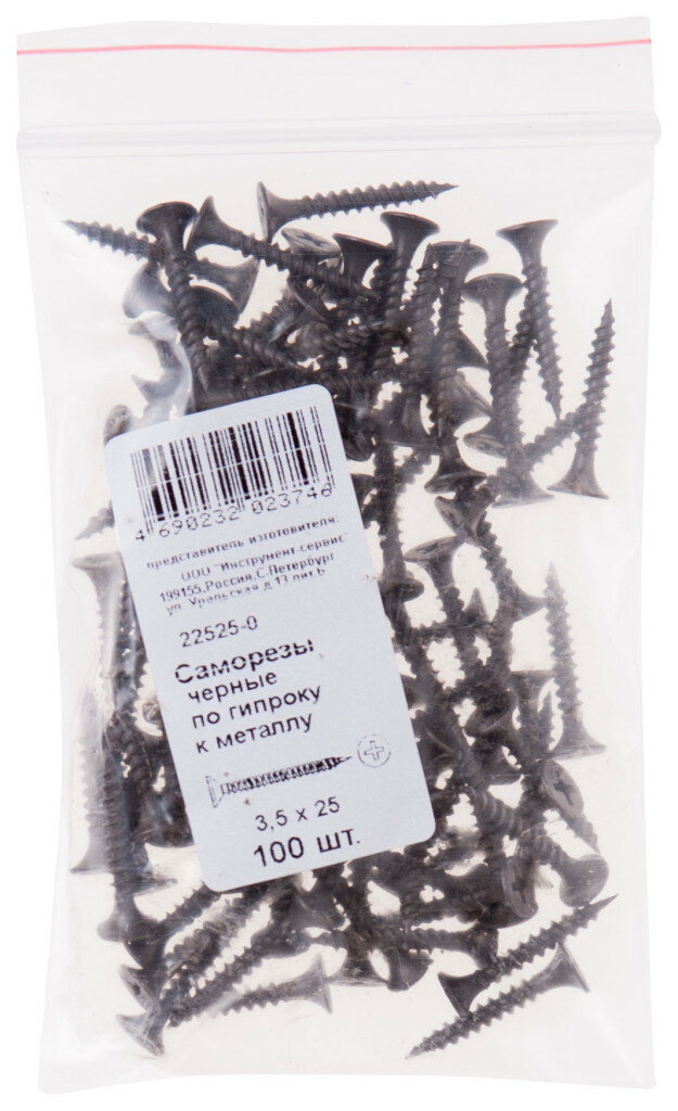 Саморезы черные по гипроку к металлу 3,5 х 25 100 шт Фасовка