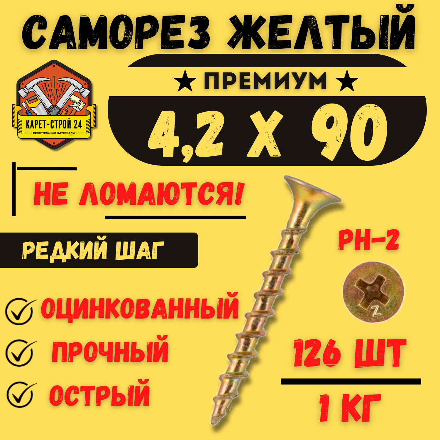 Саморез желтый по дереву 4,2х90 1 кг интересное: