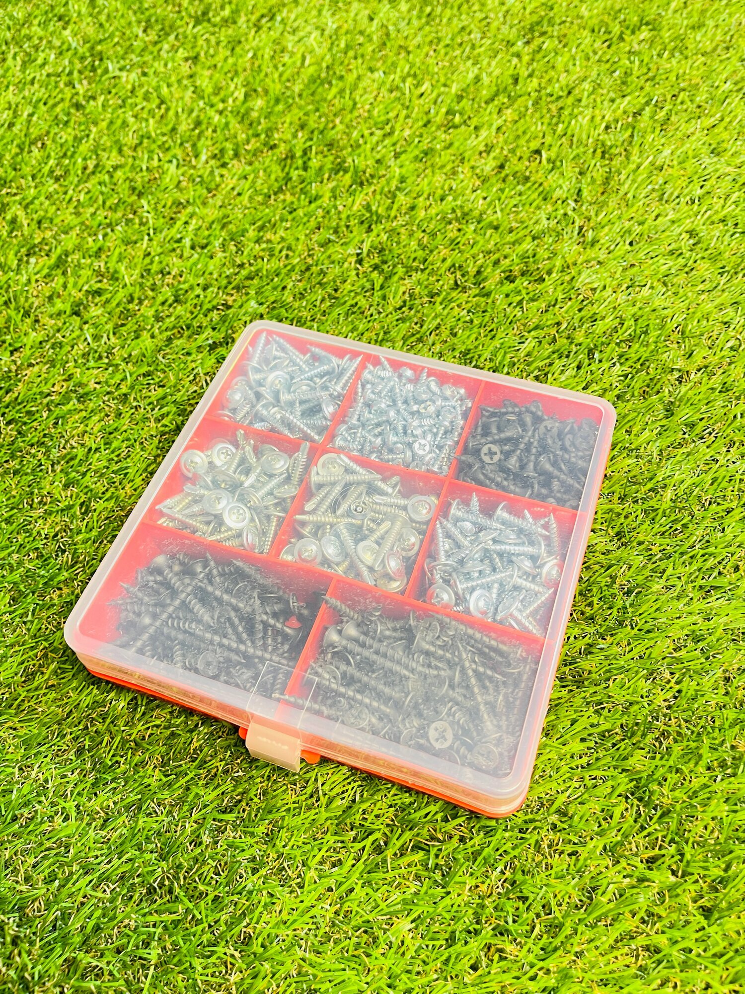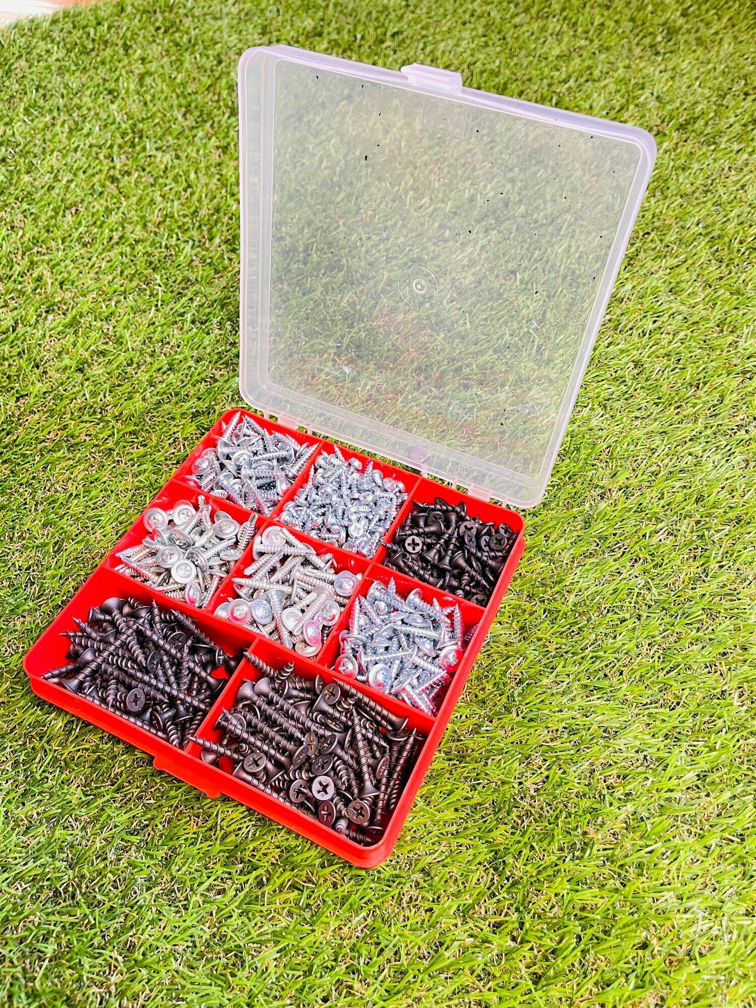 | Подробная комплектация | 8 видов саморезов в пластиковом кейсе |