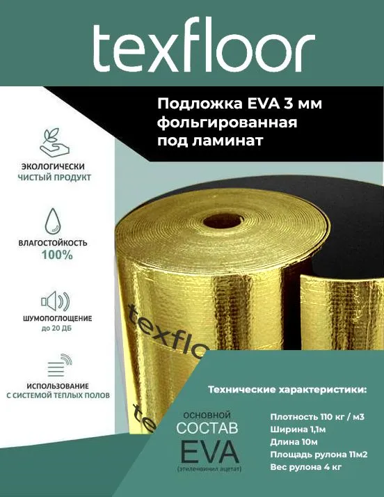 Подложка фольгированная EVA под ламинат 3 мм для теплого пола интересное: