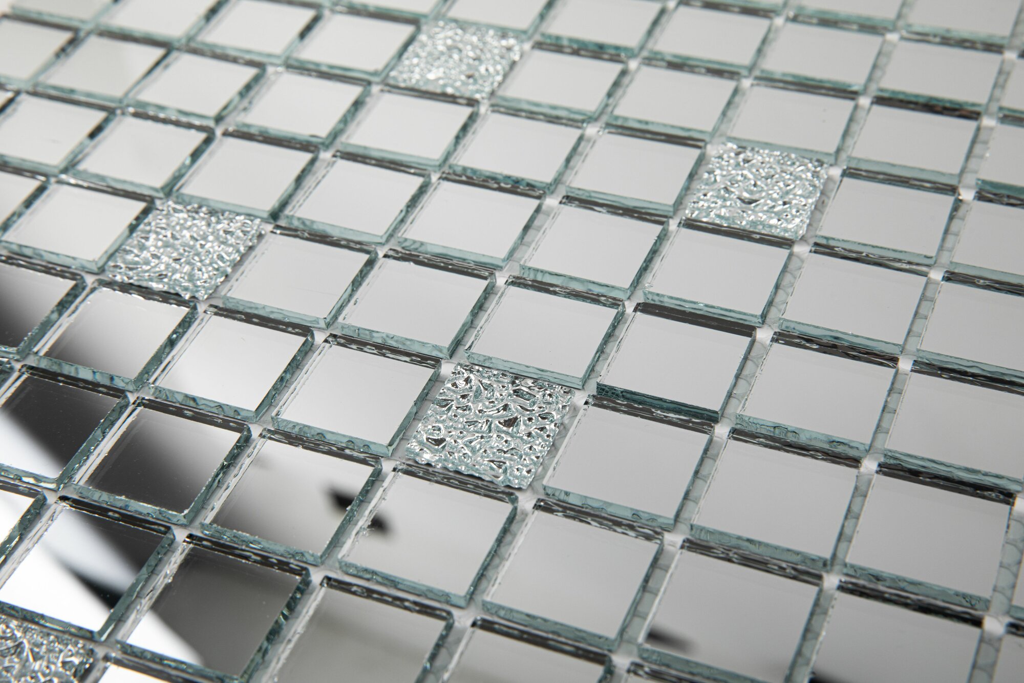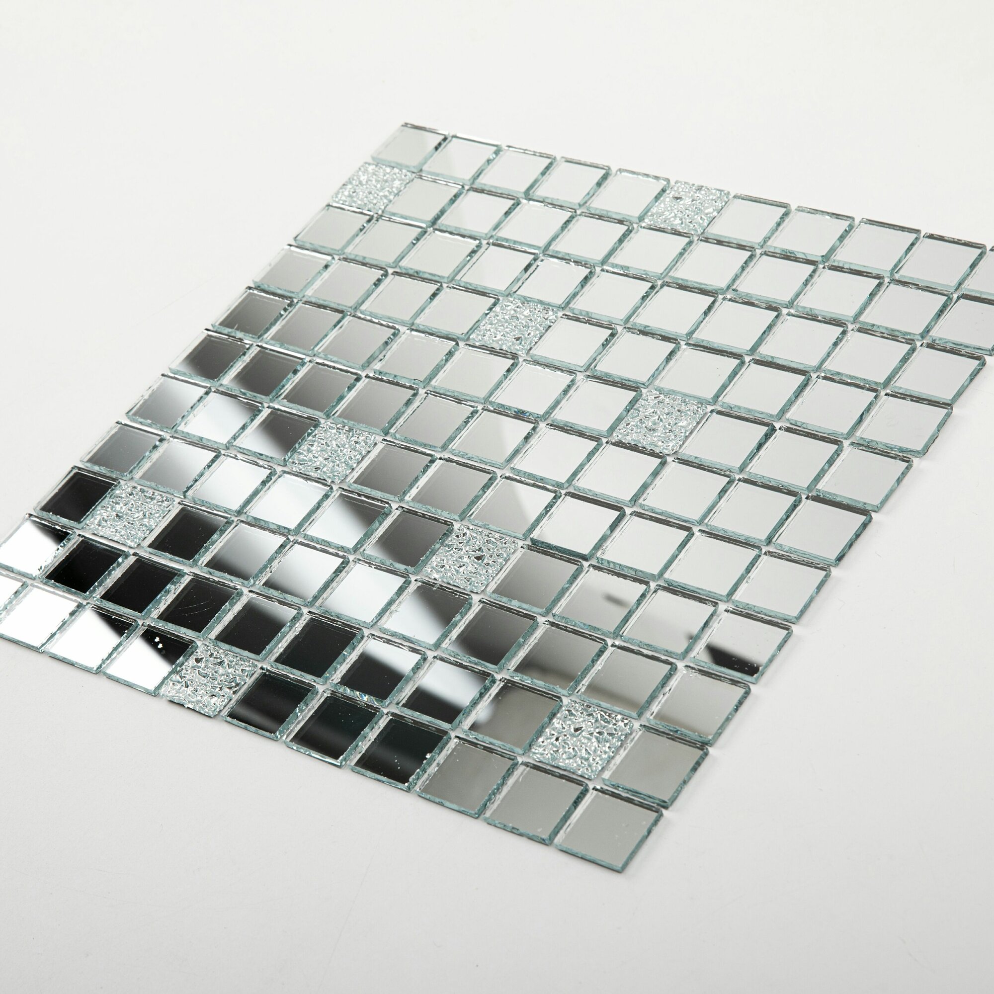 Купить Зеркальная плитка мозаика Surface 300х300 мм (уп. 10 шт. /на сетке /с элементом 25х25 мм Серебро (90%) + Хрусталь (10%) / толщина 4 мм