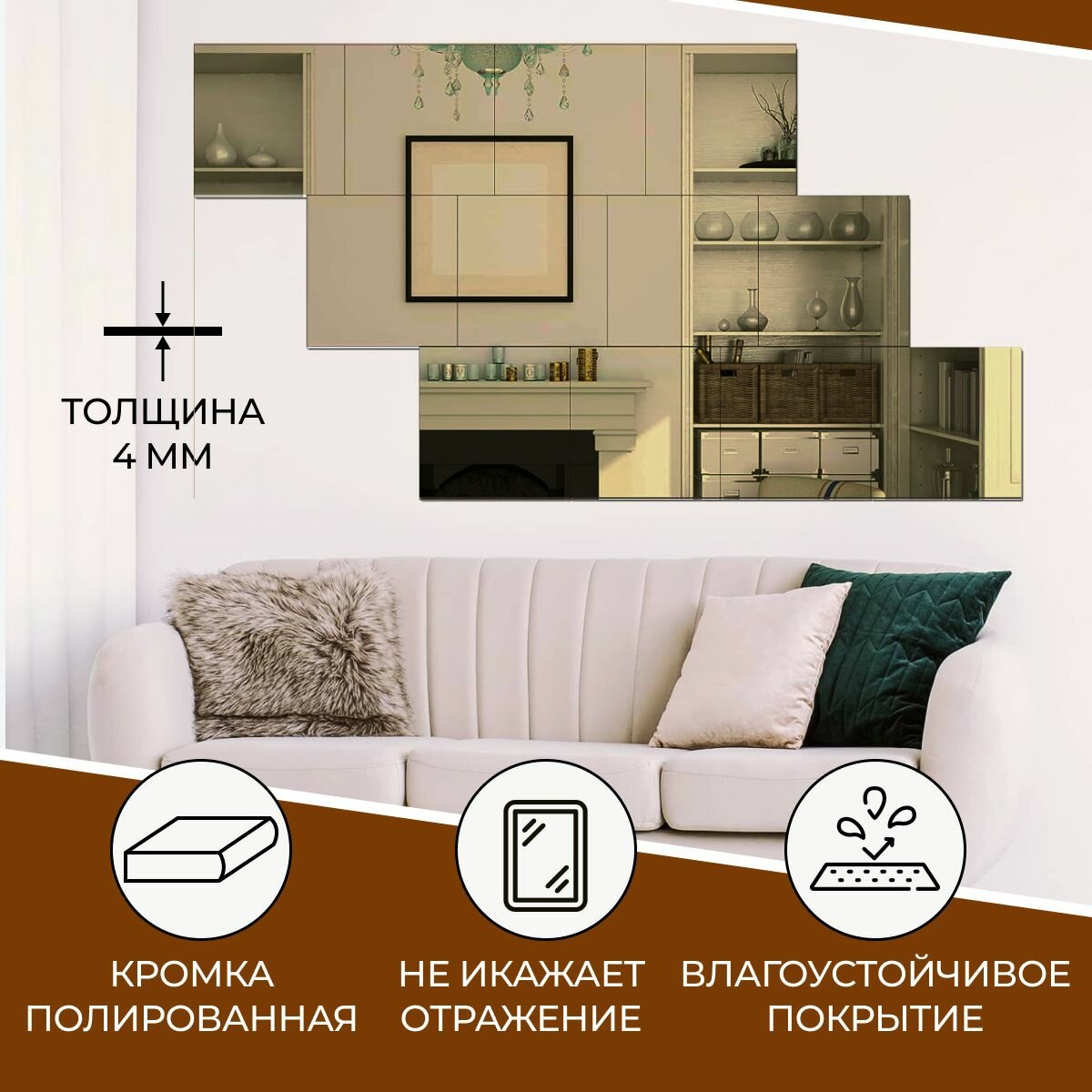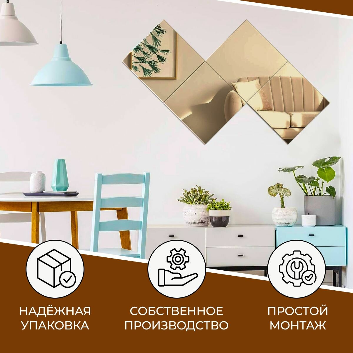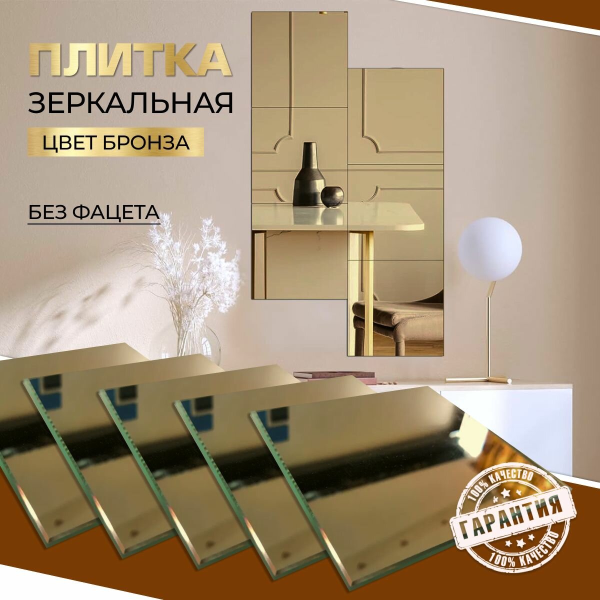 Купить Зеркальная плитка бронзовая 20 x 20 см, комплект 8 шт, зеркальное панно, мозаика