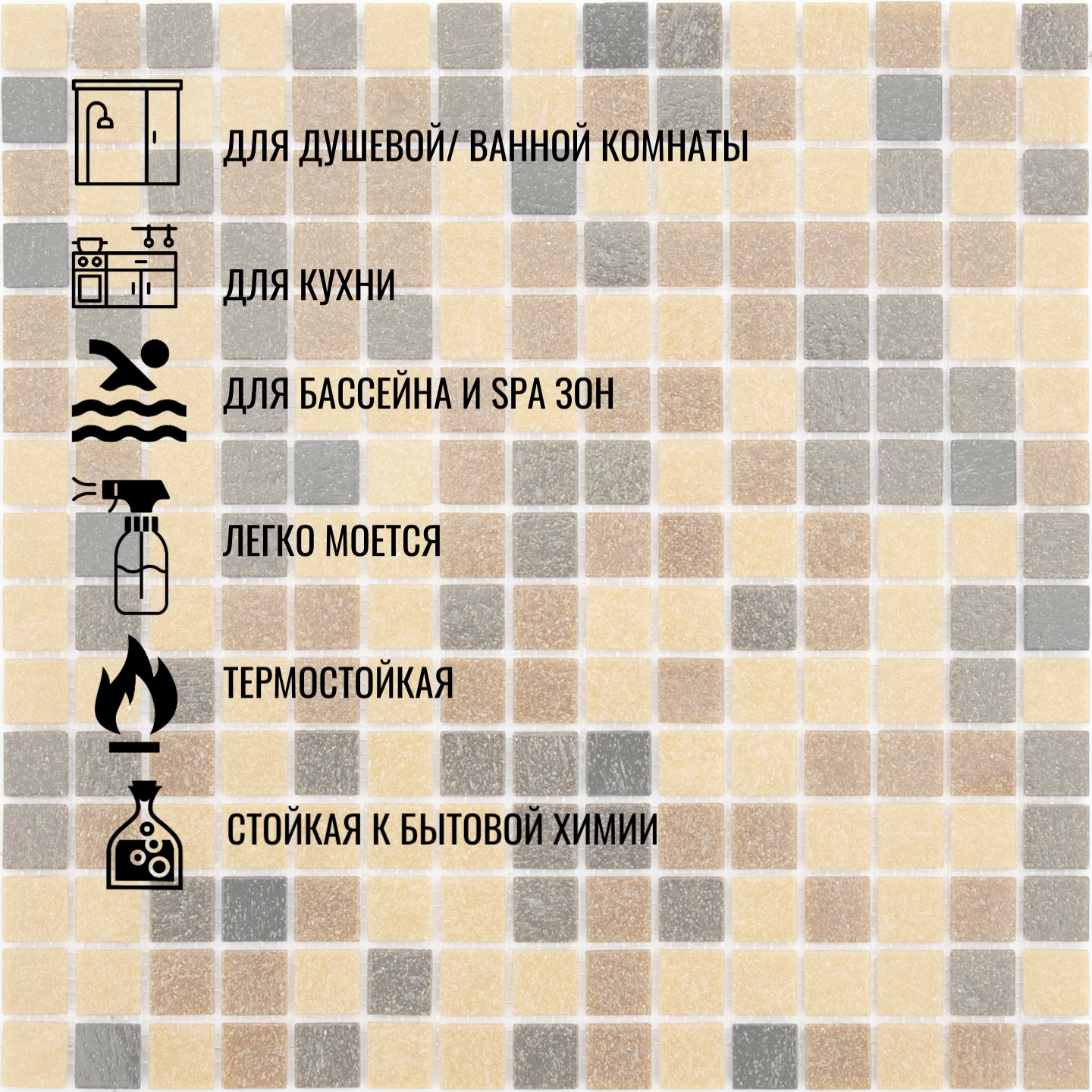 Плитка Мозаика стеклянная бежевая Albero (уп.20 шт)/ на сетке 327х 327 мм / размер квадратика 20x20x4 мм/ толщина 4 мм интересное: