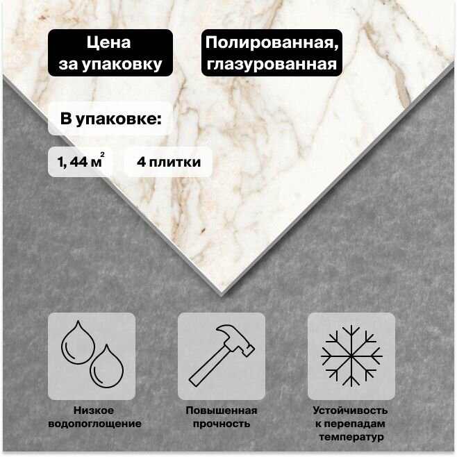 СохранитьКерамогранит Laparet Calacatta Oro золотой 60x60 см, полированный 1,44 м2; ( 4 шт/упак) интересное: