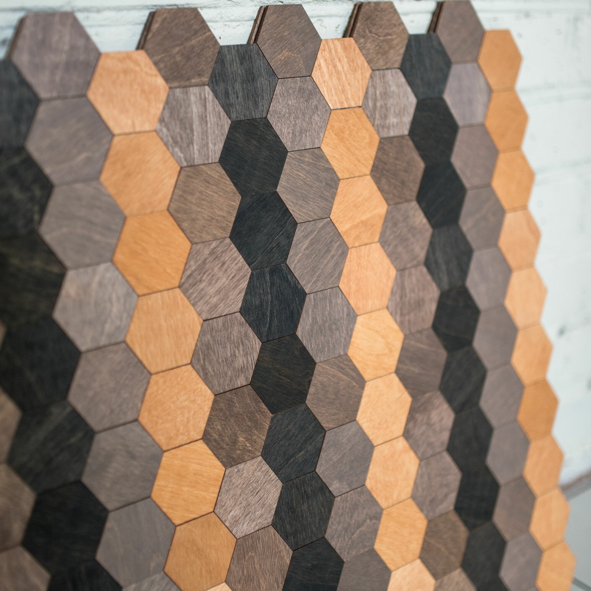 Купить Деревянная плитка для стен "Соты", рыжая Bezusoff 50х57 мм