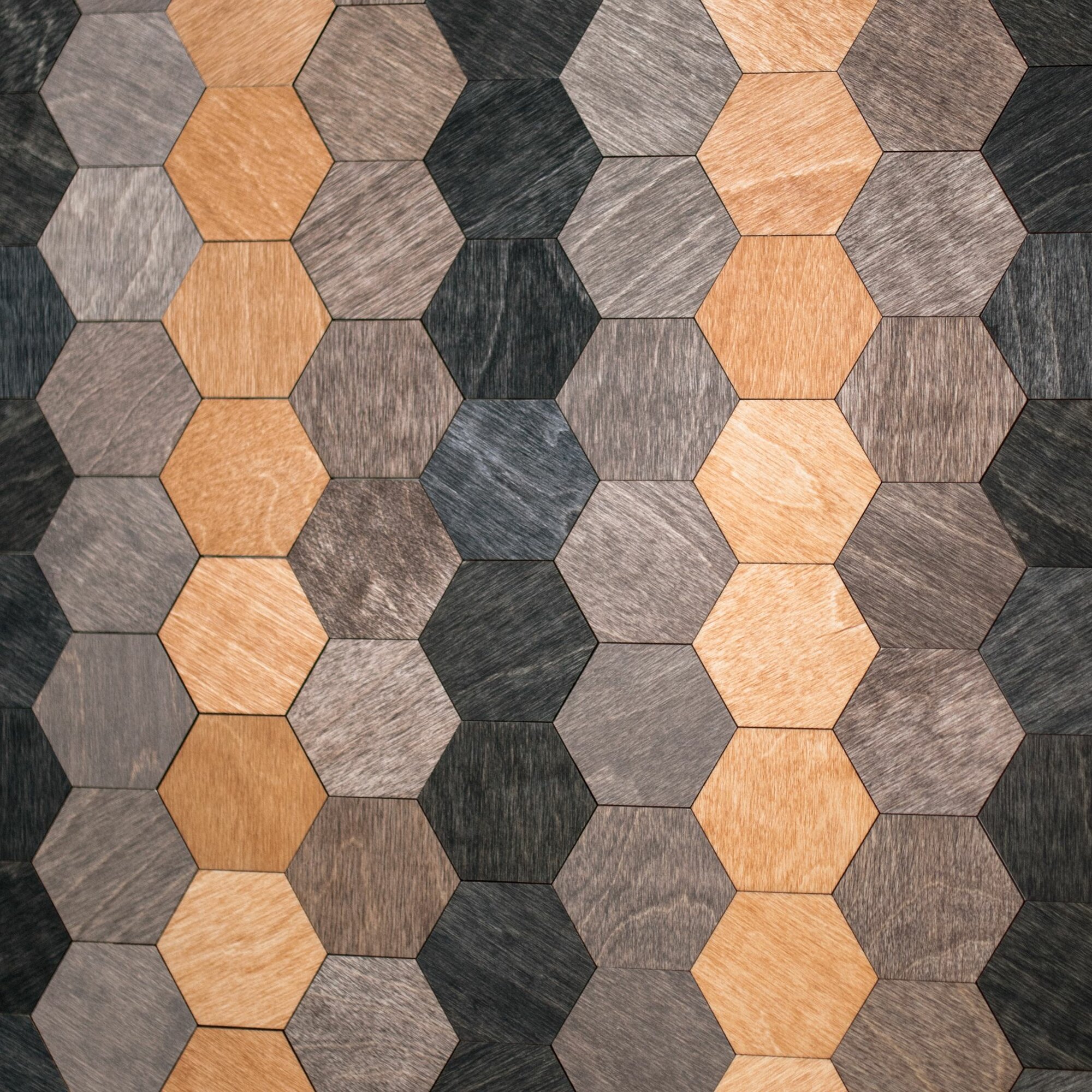Деревянная плитка для стен "Соты", графит Bezusoff 50х57 мм