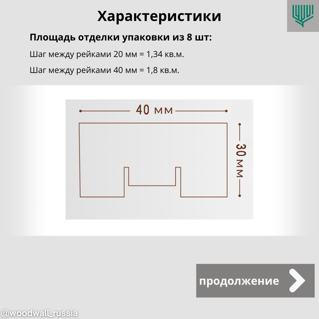 | Дополнительная информация | WOODWALL Рейка интерьерная МДФ декоративная, как деревянная; для стен, зонирования комнаты, потолка, для перегородки или ниши 40*16*2790, набор из 16 штук. |